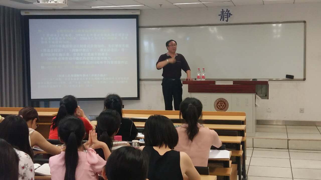 6月14日下午,中華女子學(xué)院“名師名家學(xué)術(shù)系列論壇”法學(xué)第二場(chǎng)在中華女子學(xué)院教圖樓206成功舉行。本次論壇邀請(qǐng)到中國社會(huì)法學(xué)研究會(huì)常務(wù)副秘書長、北京市勞動(dòng)和社會(huì)保障法學(xué)會(huì)副會(huì)長張恒順老師做了題為“《勞動(dòng)合同法》實(shí)施中的熱點(diǎn)問題”的學(xué)術(shù)講座。此次論壇由法學(xué)院劉明輝教授主持,法學(xué)院眾多師生聆聽了這次講座。