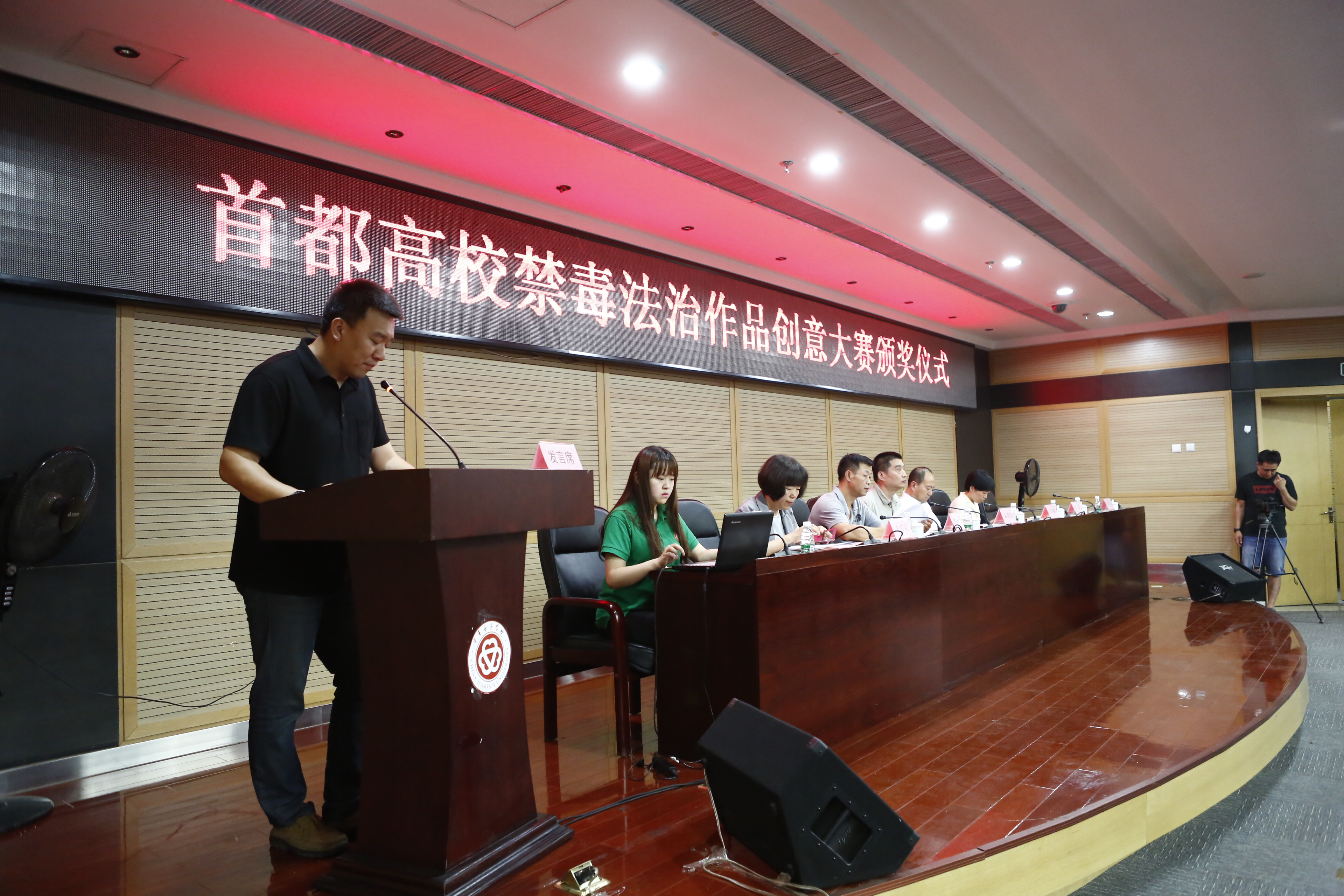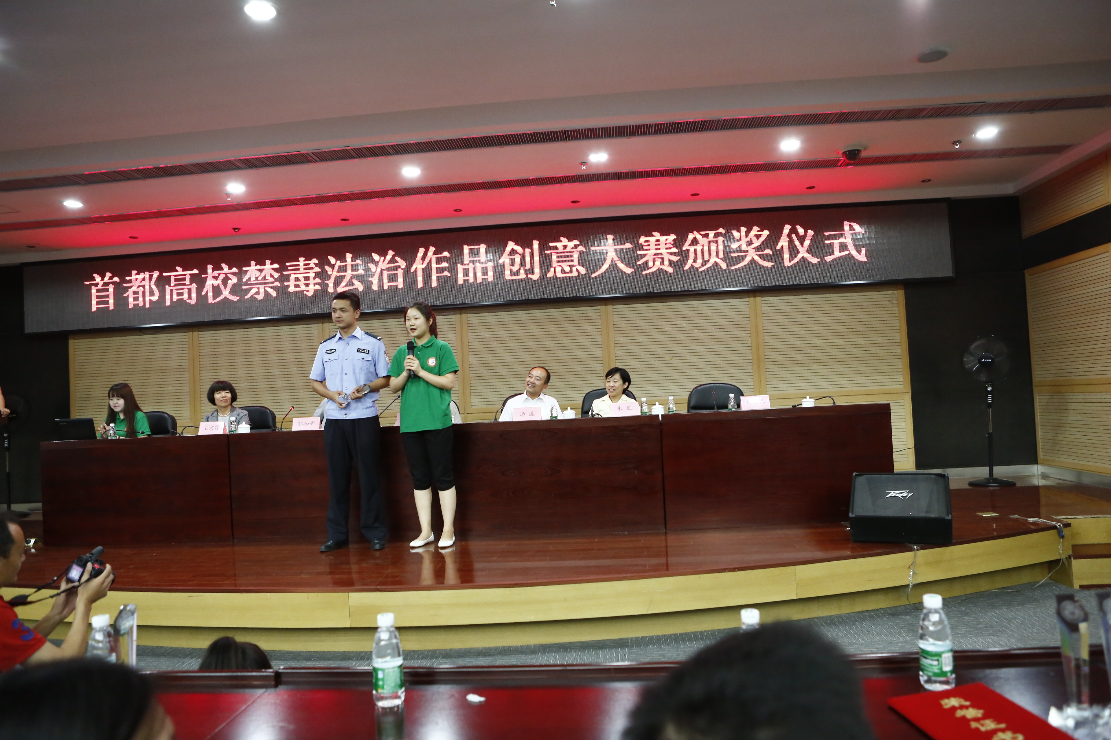 2015年6月24日下午,首都高校禁毒法治作品創意大賽頒獎儀式在我校圓滿落幕。本次禁毒法治作品創意大賽由北京市法宣辦、北京市司法局和北京市禁毒教育基地聯合主辦,獲得了北京市各大高校積極響應。本次頒獎儀式的頒獎嘉賓有北京市法宣辦、市司法局法宣處湯瀛副處長,北京市禁毒教育基地石建春主任,北京市教委政策研究室朱迎副處長,北京市新聞廣電局法制處郭知青副處長以及中華女子學院王京霞副院長。來自中國人民公安大學、北京師范大學、北京理工大學、北京航空航天大學等學校的參賽選手齊聚我校教圖樓一層報告廳。學校宣傳部長張香忖及史曄華、石海玉、法學院孟明明書記、田小梅副院長以及邢紅枚老師帶領我校青春船長普法團隊全體隊員協助了本次活動的進行。