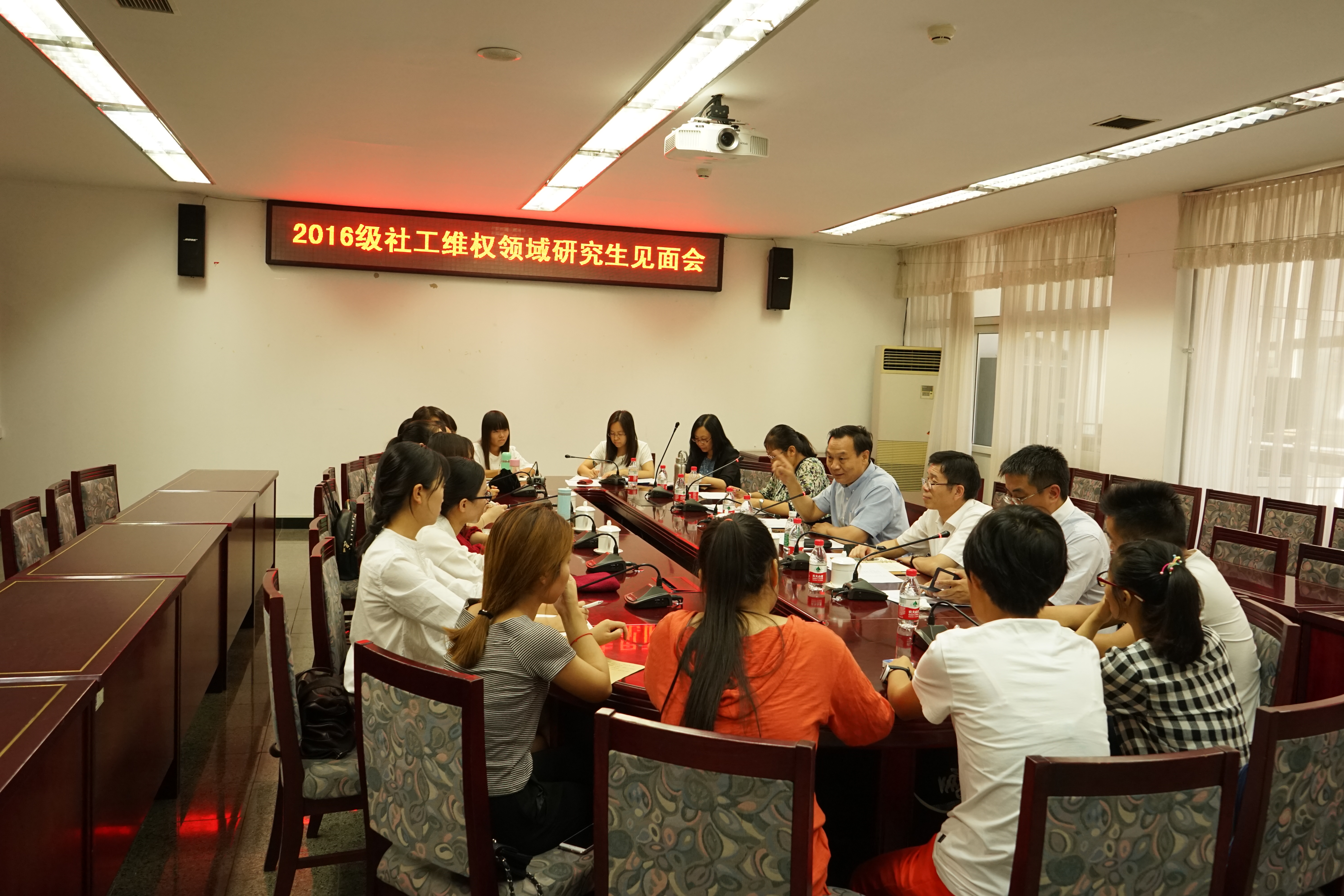 2016年9月8日下午,法學(xué)院開展了2016級社會工作專業(yè)婦女維權(quán)領(lǐng)域碩士入學(xué)教育。2016級14名新生和法學(xué)院部分碩士生導(dǎo)師參加了教育活動。