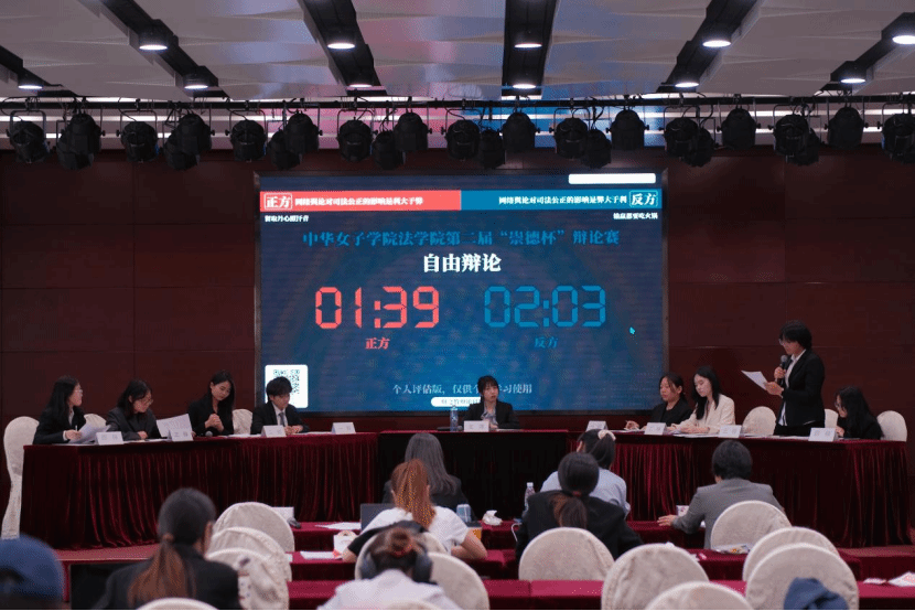 第二場辯論則圍繞“網絡輿論對司法公正的影響利大于弊還是弊大于利”展開深度思辨。正方通過網絡輿論對司法帶來的利好以及風險被規避的論斷,提出司法公開保證司法信息的真實性。反方立足弱勢群體維權,指出網絡輿論會造成信息泄漏,輿論壓力會讓法官忌憚民意而作出違背司法公正的決定。整場辯論在實體正義與程序正義的多重維度中,探索數字時代輿論監督的合理邊界,為構建司法與民意的良性互動模型提供了一定的思考方向。