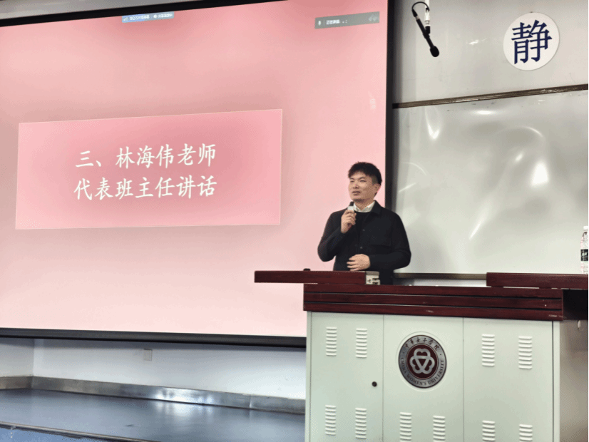 班主任代表林海偉老師分享個(gè)人經(jīng)歷,從深度思考、積極學(xué)習(xí)、保持警惕、身心健康四方面向同學(xué)們提出期望。他強(qiáng)調(diào),在AI技術(shù)快速發(fā)展的背景下,法學(xué)學(xué)子需培養(yǎng)深度思考能力與健康身心狀態(tài),在技術(shù)浪潮中堅(jiān)守人文底色,以實(shí)現(xiàn)專業(yè)素養(yǎng)與綜合能力的雙重提升。