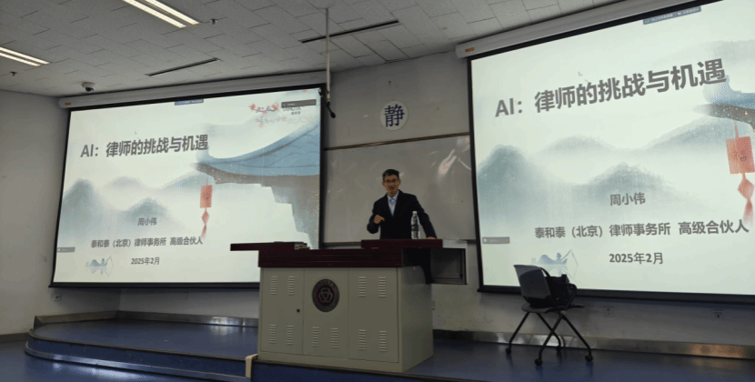“開(kāi)學(xué)第一課”是法學(xué)院每學(xué)期的特色課程。周小偉律師以《AI:律師的挑戰(zhàn)與機(jī)遇》為題,深入探討“AI”在法律領(lǐng)域的應(yīng)用現(xiàn)狀、潛在影響及未來(lái)發(fā)展趨勢(shì),特別是在輔助法律工作、替代律師職業(yè)可能性以及司法AI化等方面的挑戰(zhàn)與機(jī)遇,為同學(xué)們帶來(lái)了一場(chǎng)深刻而富有啟發(fā)性的講座。他指出,人工智能雖能優(yōu)化文書(shū)處理、法律檢索等基礎(chǔ)性工作,但在價(jià)值判斷、情感共鳴以及復(fù)雜案件的創(chuàng)造性解決方面,仍無(wú)法替代律師的核心作用。“AI是工具,而非替代者”,他寄語(yǔ)學(xué)生主動(dòng)擁抱技術(shù)變革,夯實(shí)專業(yè)功底,提升AI工具運(yùn)用能力、人際協(xié)調(diào)力與創(chuàng)新決策力,將技術(shù)與人文精神相結(jié)合,鍛造不可替代的競(jìng)爭(zhēng)力。