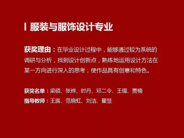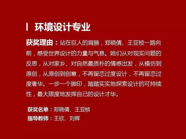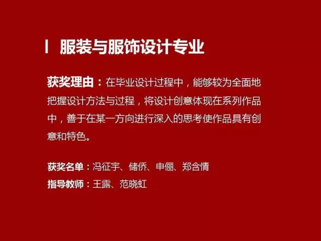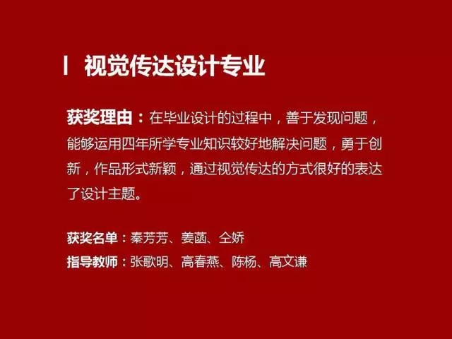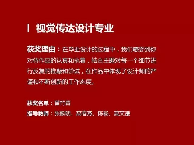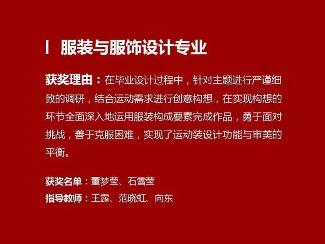 2017年5月23日13:00在中華女子學院文體樓二層多功能廳藝術學院師生匯聚一堂,以優秀畢業設計頒獎典禮的名義為畢業季畫上完美的句號并為2017屆畢業生送上期許和祝福。典禮由李鎮副院長主持。王露院長以胡適先生送給學生的一段話作為禮物送給藝術學院全體畢業生,鼓勵大家帶著問題意識、個人興趣和專業自信走入社會,開始新的生活。之后劉洪玉副書記宣讀了獲獎名單。經過服裝與服飾設計、環境設計和視覺傳達設計三個專業教研室的認真評選,共23名同學獲獎,其中三等獎11名,二等獎8名,一等獎4名。同學們通過關注功能服裝的運動N次方、關注詩意生活的理想·家以及關注女性話題的她語三個分主題完美詮釋了設計在我們的當代生活中應該扮演的角色、價值和意義。至此藝術學院在師生的相互祝福中落下帷幕。祝福以尊重、熱情、獨立、奉獻為院訓的每一位女院畢業生都能在自己未來的人生道路上走得精彩、美好。