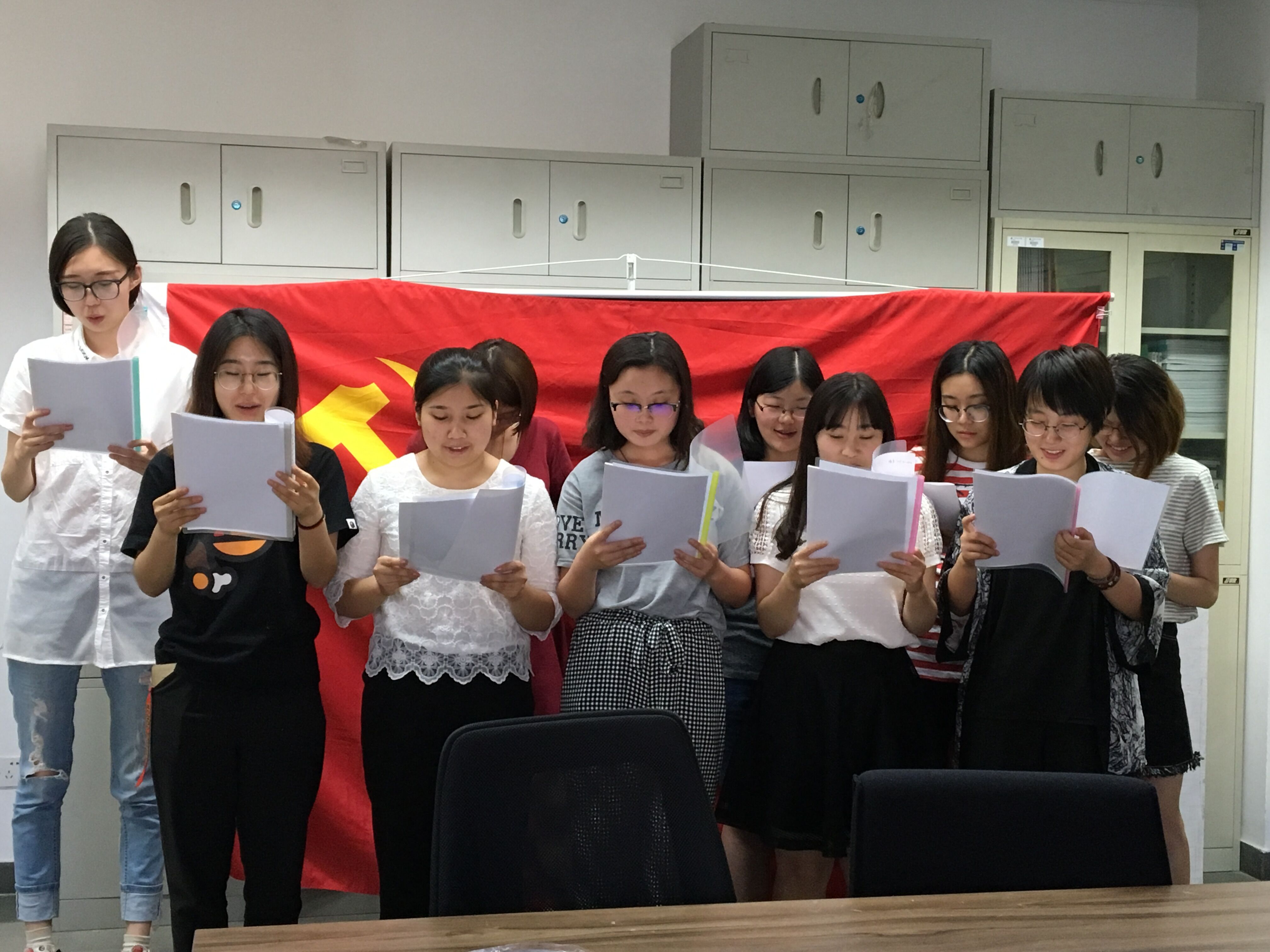 為迎接黨的十九大勝利召開,慶祝中國共產(chǎn)黨成立96周年,扎實推進(jìn)“兩學(xué)一做”學(xué)習(xí)教育常態(tài)化制度化,藝術(shù)學(xué)院黨總支于2017年6月16日中午組織黨員、學(xué)生黨員及積極分子舉行了“不忘初心,繼續(xù)前進(jìn)”紅色經(jīng)典誦讀黨日活動。