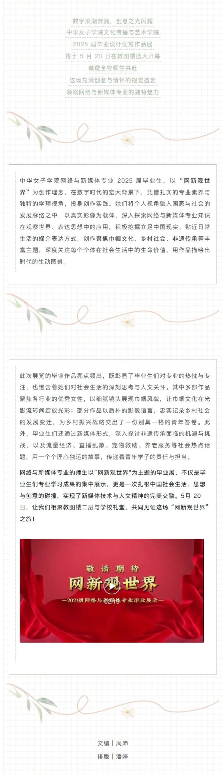網新觀世界|中華女子學院網絡與新媒體專業 2025屆畢業設計優秀作品展 暨第十八屆畢業季藝術周