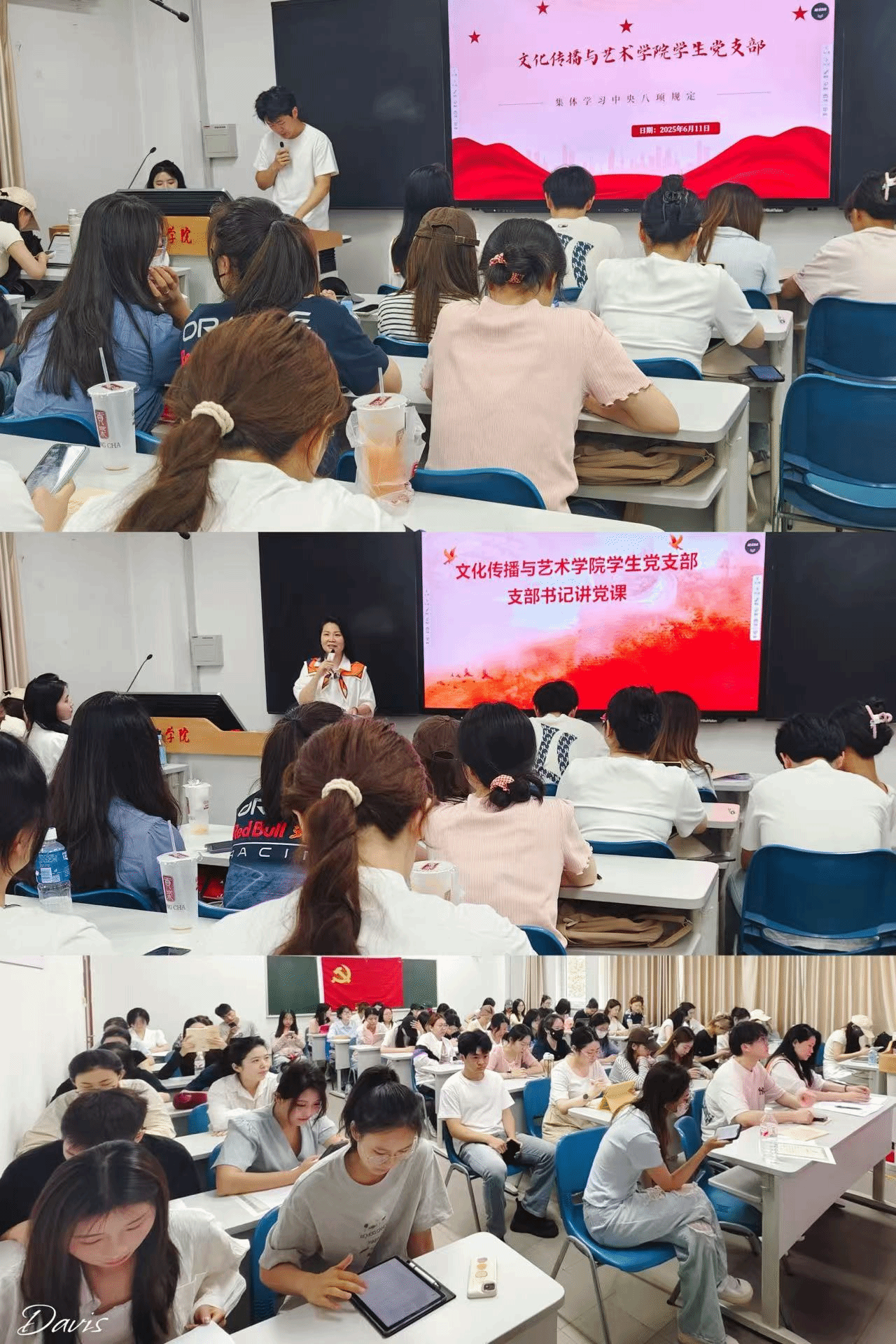 6月17日,文化傳播與藝術學院學生黨支部在主樓210開展專題學習活動,強化作風建設,引導黨員深刻認識中央八項規定的重要意義,并貫徹到日常工作和生活中,全體學生黨員參加。