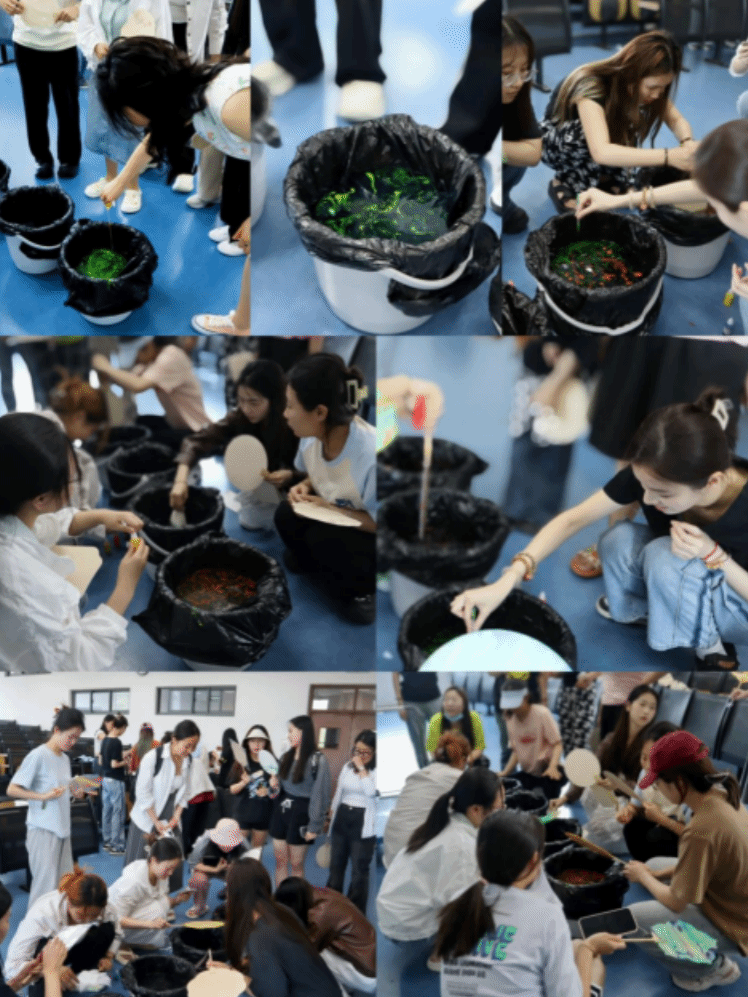 在DIY非遺漆扇系列中,學生們體驗了國家級非物質文化遺產——漆染工藝。大家發揮自身專業特長,通過“飄漆”技法,在水面上繪制出了獨特的扇面圖案,一把普通的漆扇變成了一件獨一無二的藝術品。通過該系列,同學們不僅了解并參與到了漆藝的傳承,同時也為非遺文化的保護和發展貢獻了一份自己的力量。