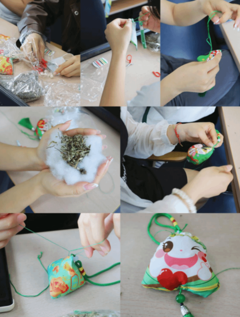 在DIY端午香囊系列中,學生們親手制作了香囊,不僅學習到了香囊的制作方法,體驗到了親手制作的樂趣,更重要的是大家在一針一線的縫合制作過程中感受到了端午傳統文化的深厚底蘊和獨特魅力。