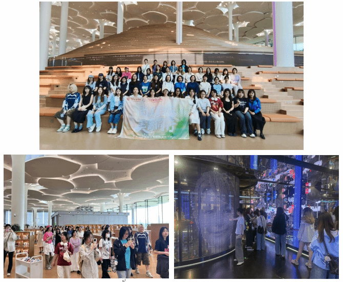 本次美育活動以“行走”為載體,以“具身認知”為導向,從“空間敘事+數字交互+價值引領”三個維度構建了美育浸潤的立體化路徑:依托圖書館典籍典藏與博物館千年文脈構建的“空間敘事”場域,引導學生在跨時空交流中實現從美學感知到文化傳承的認知進階;通過體驗虛實融合的“數字交互”技術,搭建傳統美學精神與現代設計語言的轉化通道;協同文博單位建立“價值引領”機制,通過專業導覽、現場觀摩、文創體驗等多元形式,形成“尋美—鑒美—育美”的完整育人閉環。