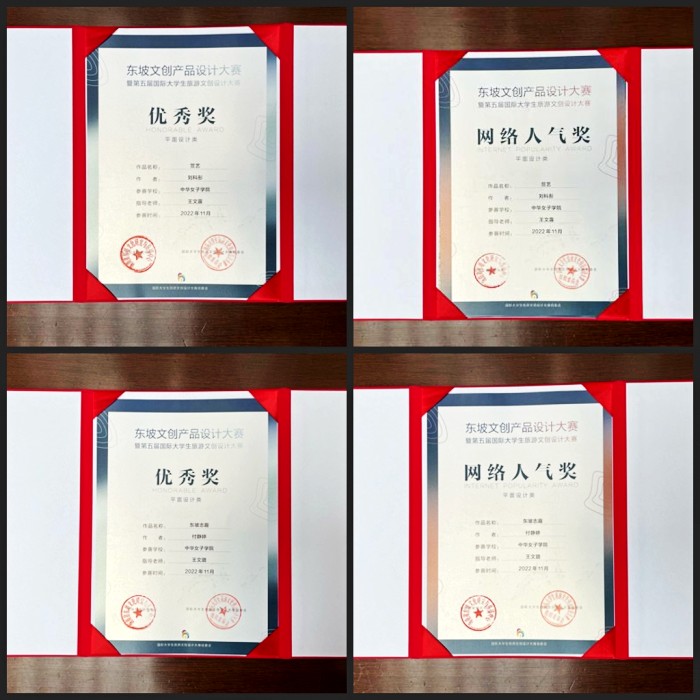 本次大賽邀請了清華大學美術學院原院長、第八屆國務院學位委員會設計學科評議組成員魯曉波教授,中央美術學院設計學院院長、第八屆國務院學位委員會設計學科評議組成員宋協偉教授,中國傳媒大學動畫與數字藝術學院黨委書記黃心淵教授等15位行業大家作為終評專家,秉持“公平、公正、客觀、雙盲”的原則進行評審,具有極高的專業性與權威性。我校學生能夠在大賽中斬獲佳績,表明文化傳播與藝術學院在實踐“文化+科技”融合創新的教學模式上已逐見成效,學生通過深挖東坡文化的當代價值,利用設計語言對東坡文化、東坡精神進行創新轉化,以數字媒體、平面設計的形式向用戶傳達蘇東坡積極向上的人生態度和達觀憫人的家國情懷,推動東坡文化傳承與弘揚。