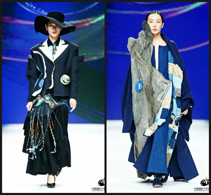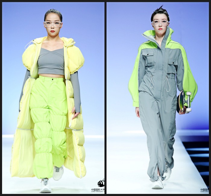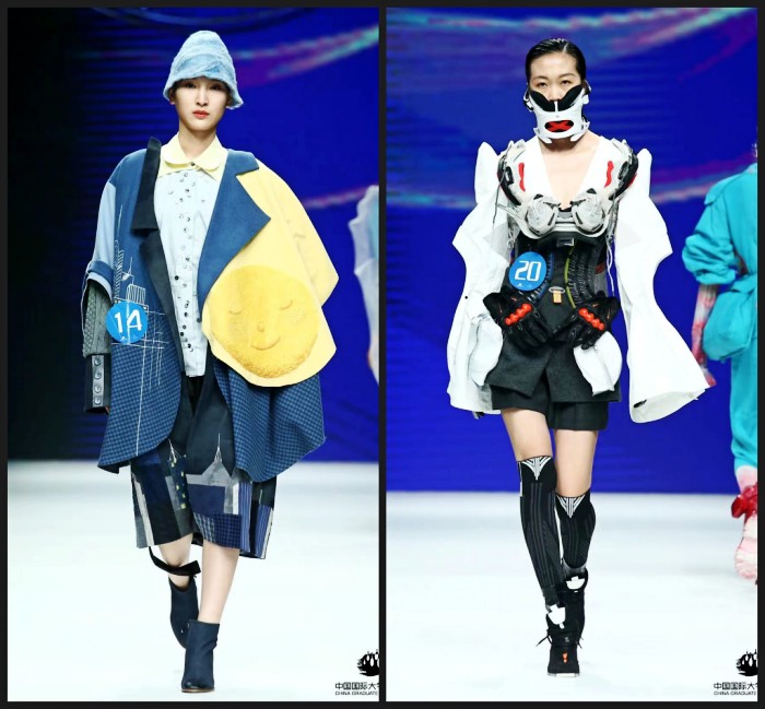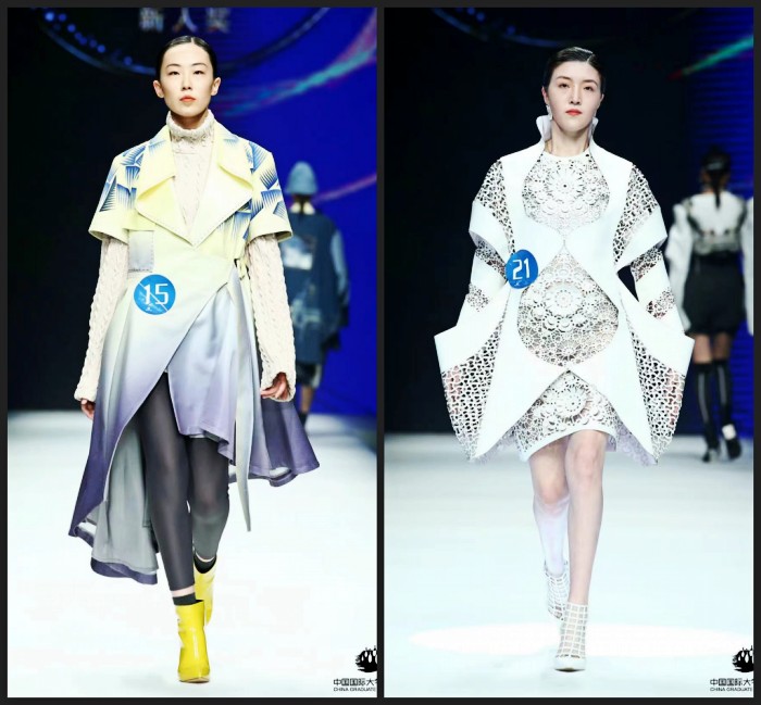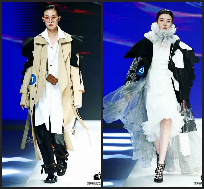 這三場秀分別是:中華女子學(xué)院藝術(shù)學(xué)院畢業(yè)生作品專場、北京聯(lián)合大學(xué)畢業(yè)生作品專場、新人獎決賽專場。從女院秀場功能與時尚并重的運動裝、到聯(lián)大秀場探尋本土文化根脈的潮服,再到新人獎專場強調(diào)設(shè)計師創(chuàng)意的服裝......雖然每場秀的風(fēng)格迥異,表演專業(yè)的模特們都能準(zhǔn)確把握設(shè)計理念,充分詮釋服裝特色。