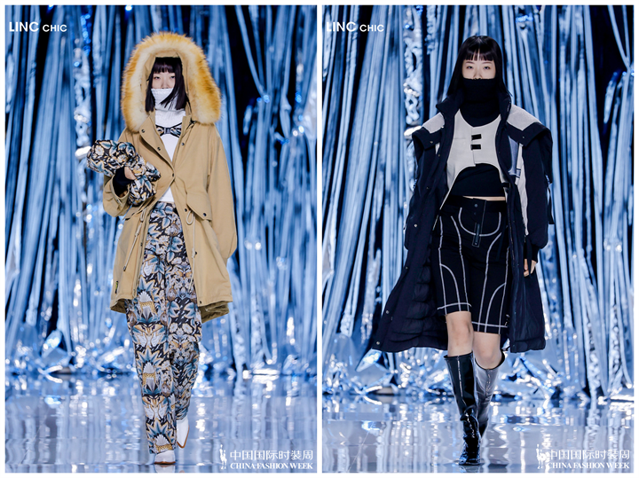 20級學生周思含在中國國際時裝周LINCchic—金羽杰品牌發布會秀場中。