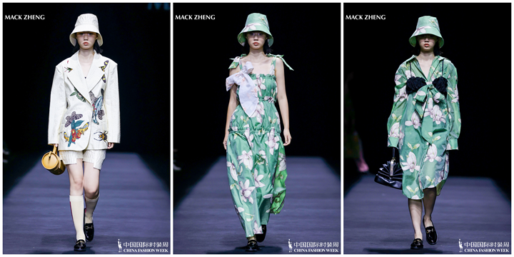 20級學生周思在中國國際時裝周MACK ZHENG 品牌發布會秀場中。