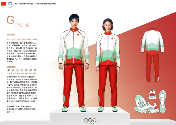 此外,藝術(shù)學(xué)院還打造了星耀、祥源、凱漩、躍燃、薪火、戰(zhàn)甲、瓷韻7個(gè)系列奧運(yùn)領(lǐng)獎(jiǎng)服設(shè)計(jì)方案。設(shè)計(jì)不僅在圖案上創(chuàng)新,綜合考慮立體動(dòng)態(tài)服裝結(jié)構(gòu)設(shè)計(jì),采取環(huán)保、熱壓、激光切割等工藝新技術(shù),結(jié)合多功能可持續(xù)面輔料的應(yīng)用。
