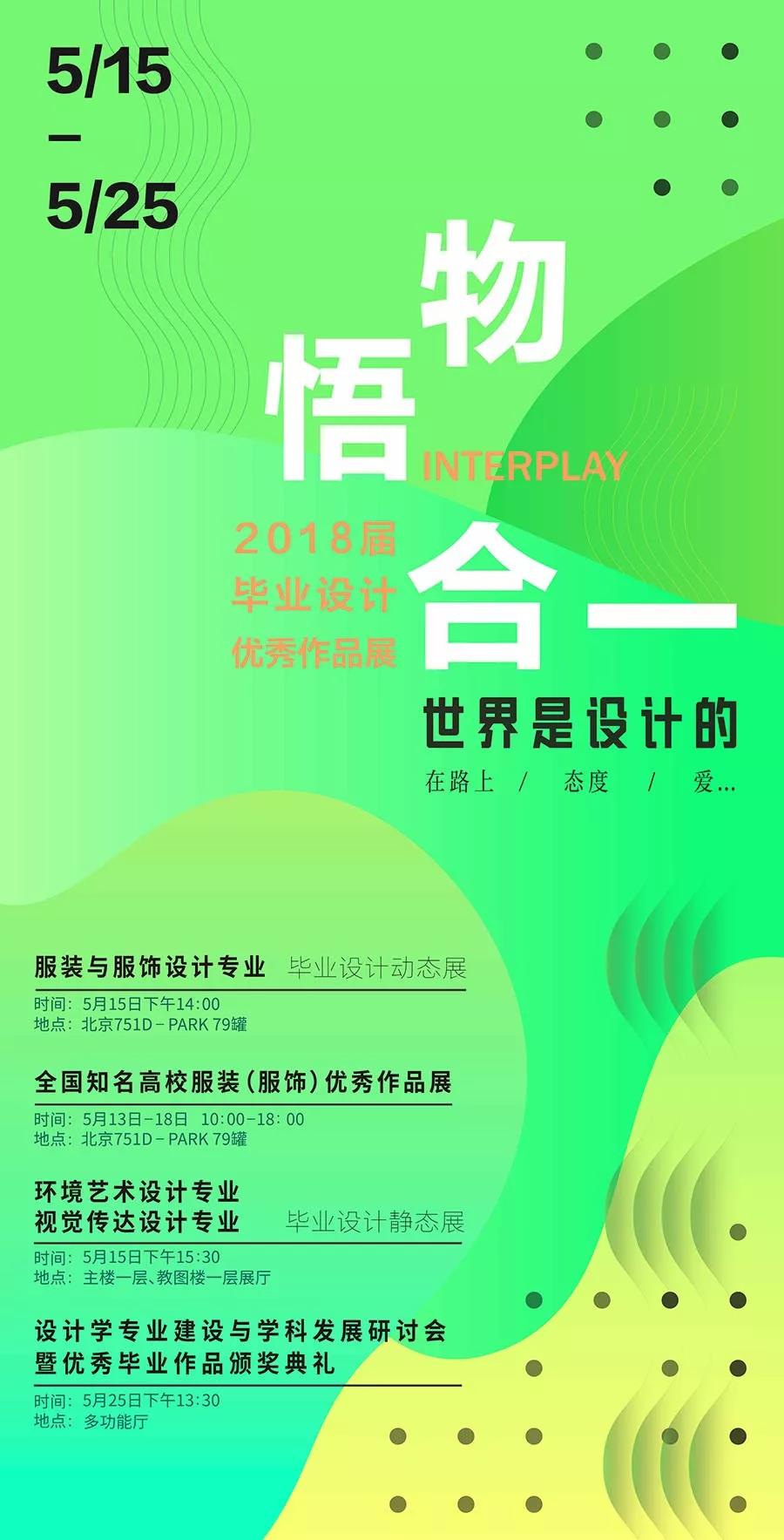 在藝術學院迎來第十個畢業設計展的日子里,關于物與悟的話題一直在繼續。是設計使思考和執行之間產生相互關系,而它遠不僅僅是視覺效果,形狀與色彩那么簡單。就如去年在畢業優秀作品展的主題“設計的角色”所探討的一樣,設計影響著這個世界,它的價值在哪里,它的作用在哪里?設計將怎樣影響這個世界?今年藝術學院畢業設計優秀作品展的總主題“物悟合一:世界是設計的”,分主題是服裝與服飾設計專業的“在路上”、環境設計專業的“態度”和視覺傳達設計專業的“愛……”。165余件作品分別從不同專業視角在探討設計的作用與影響。作品充滿激情與探索的青春氣息,也帶著未來設計師們對于設計倫理的思考。
