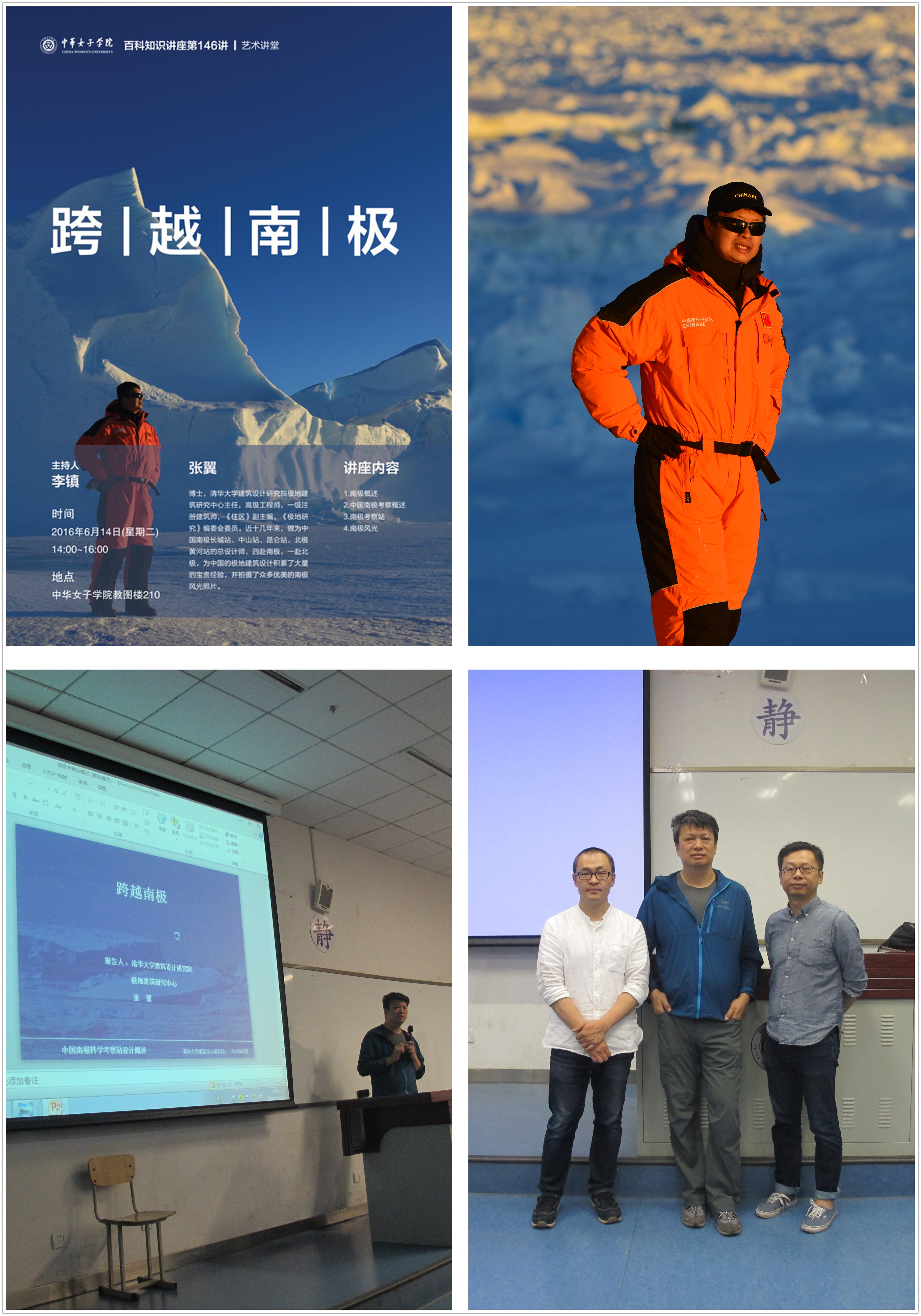 2016年6月14日在教圖樓210教室,張翼老師進行了一次題為“跨越南極”的講座。張翼老師是清華大學建筑設計研究院極地建筑研究中心主任、高級工程師、一級注冊建筑師、《住區》副主編、《極地研究》編委會委員,近十幾年來,作為中國南極長城站、中山站、昆侖站、北極黃河站的總設計師,四赴南極,一赴北極,為中國的極地建筑設計積累了大量的寶貴經驗,并拍攝了眾多優美的南極風光照片。講座涉及南極概述、中國南極考察概述、南極考察站、南極風光等內容。張翼老師在接觸南極項目之前是清華大學建筑設計研究院創作室主任,然而一個浪漫的想法使他開啟了為期十余年跨越南極的壯舉并成為目前國內極地建筑第一人。在講座中張翼老師為大家分享了他在南極考察站做建筑的苦與樂以及建筑設計在南極考察站建設中的重要作用同時也介紹了南極建筑設計的獨特方法。隨后參加講座的同學和老師們與張翼老師進行了互動。講座持續時間近三個小時并在熱烈的掌聲中結束。(文:于竹青)