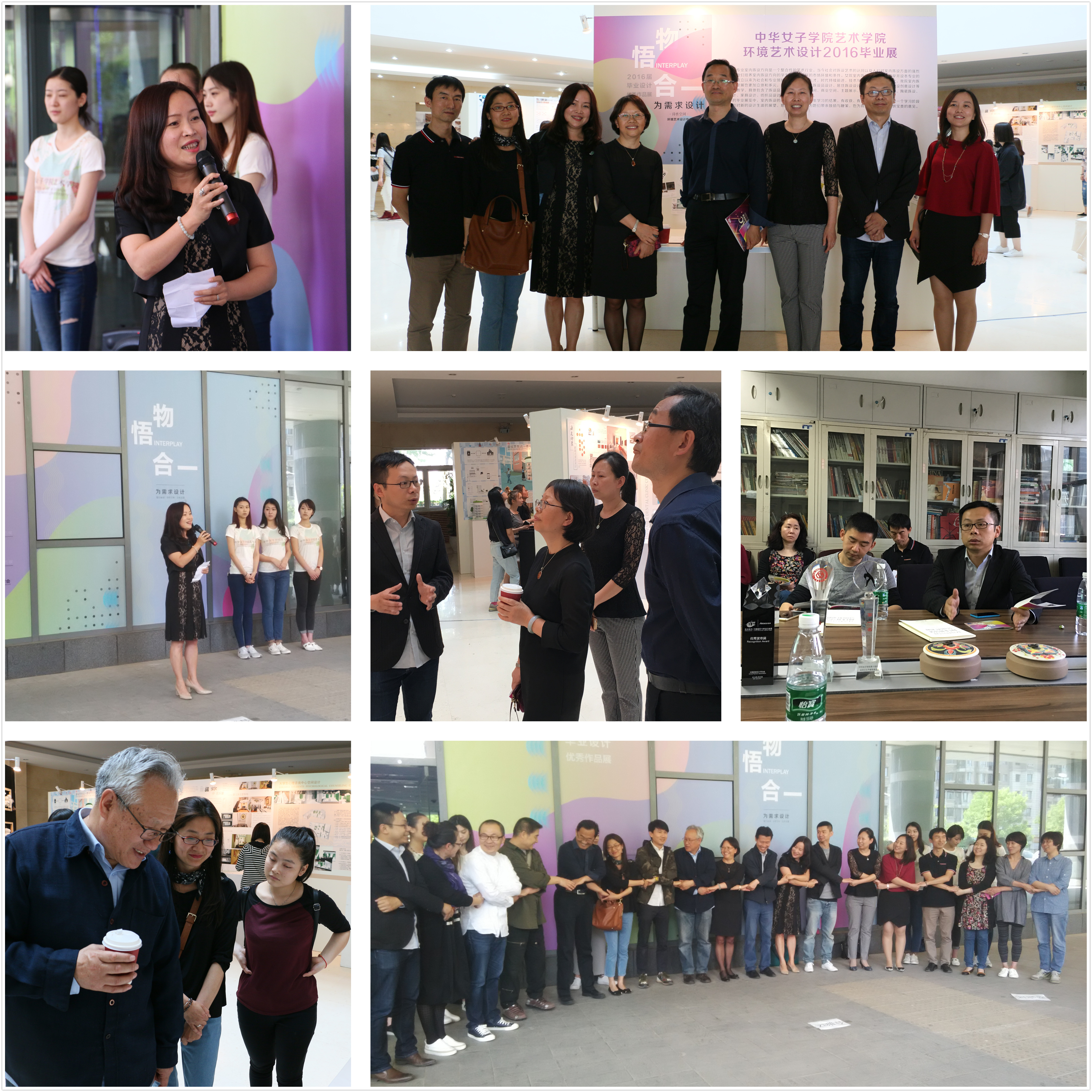 五月十日下午一點半在教圖樓一層藝術學院2016屆優秀畢業設計作品展正式開幕。中華女子學院副院長王練教授、教務處處長候典牧教授、藝術學院院長王露教授出席了此次開幕式。特邀嘉賓清華大學美術學院劉巨德教授、張歌明教授,北京服裝學院造型藝術系主任田輝教授,無有建筑事務所負責人湯達峰,創意分子北京廣告有限公司創始人曹峰參加了開幕式。