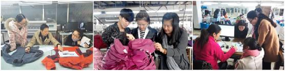 通過現場實踐和面對面交流的形式,同學們詳細了解了有關運動裝的生產工藝流程及設計方法,就服裝制作的工序展開了討論,也對運動裝設計制作過程中存在的困難和挑戰進行了思考。在調研的同時,也了解了相關的機器設備,為日后設計的實現程度提供了技術支持。調研進一步加強了我校運動裝設計課程與實踐基地——南京天上龍服飾有限公司的交流和合作,在汲取工廠先進技術、了解機器設備的同時,學習了服裝設計制作過程中的要點,開拓了同學們的眼界,為課程教學獲取了寶貴的一手資料,為運動裝設計水平的提高提供了思路和方向。