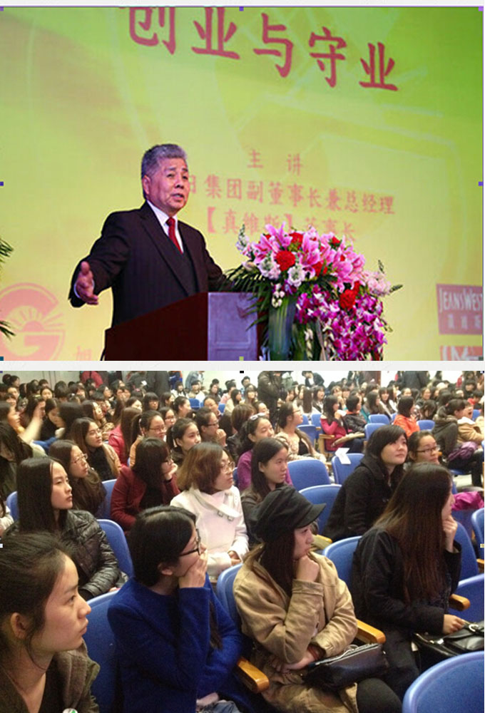 真維斯董事長楊勛先生早年從熨燙工做起,靠著勤奮拼搏積累第一桶金后果斷轉型,抓住商機創立了休閑服裝真維斯品牌。他通過自己的親身經歷鼓勵同學們擁有自己的創業夢想,用自己在創辦真維斯品牌過程中積累的實戰經驗告知同學們如何正確對待創業路上的挫折,激勵大家勇往直前,永不放棄。演講過程中,楊勛先生和現場的同學們積極互動,對學生們提出的問題給予積極回應,氣氛熱烈。