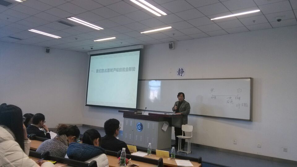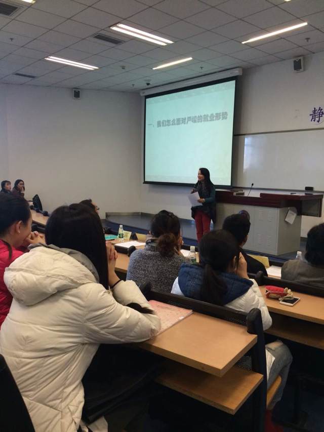學校相關部門的老師在就業意向、就業政策、留學政策、西部志愿計劃等方面分別做了詳細的介紹和講解。就業輔導員在分析往屆畢業生就業情況的基礎上,給畢業生提出了相關的就業建議。院長王露現場進行了就業動員并對畢業生提出了殷切希望。管理學院的閆芃序老師用自己的親身經歷介紹了西部志愿者的日常生活,鼓勵畢業生們服務基層。各位教研室負責老師也分別給畢業生們加油鼓勁。老師們具體的指導、詳盡的講解和縝密的分析讓畢業生對自己的就業前景和就業方向有了較為深刻的認識。