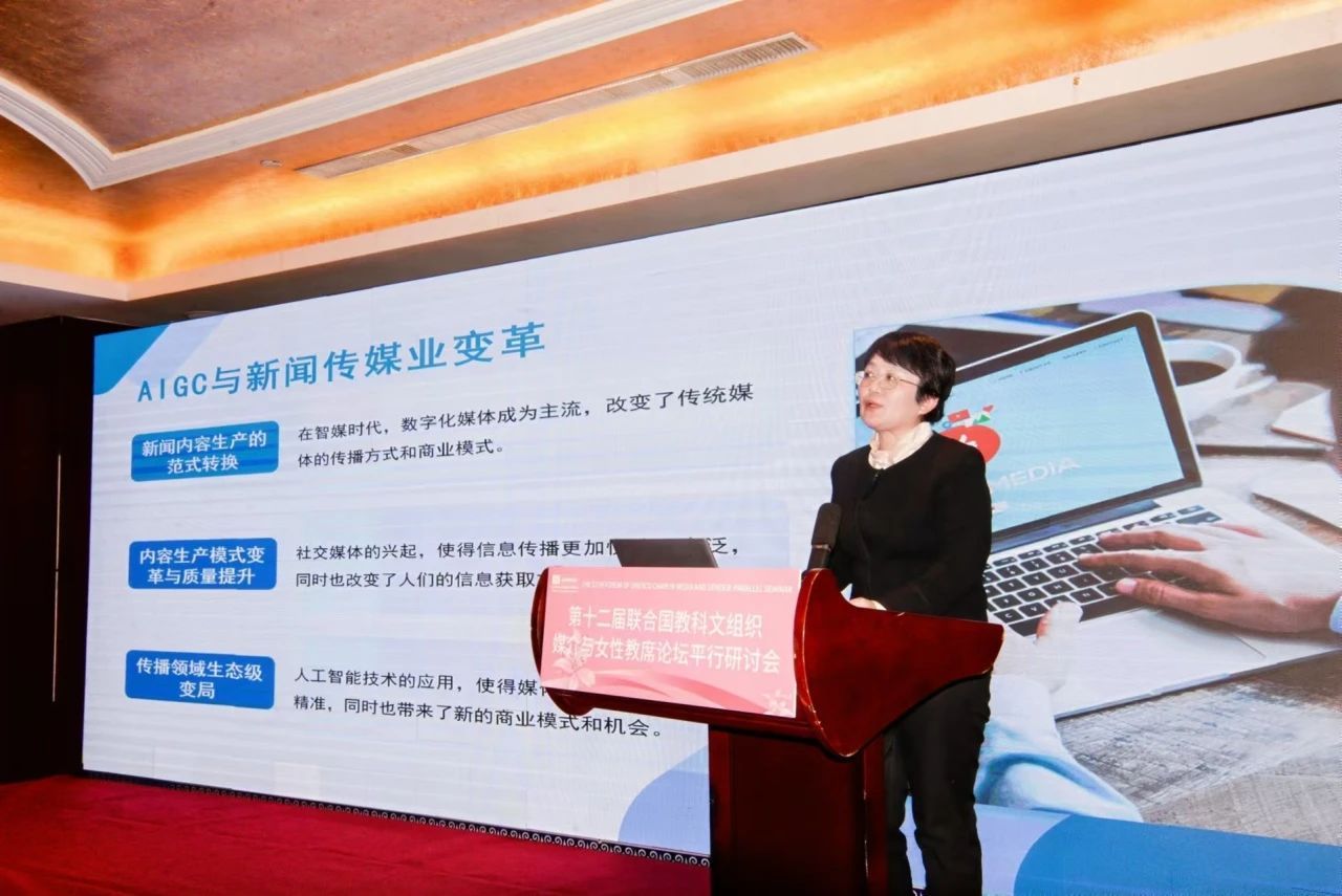 中國傳媒大學媒介與女性研究中心副主任王琴從學術視角帶來了對女性數字賦能現狀與挑戰的深刻分析。王琴副主任的發言中強調了女性在數字社會中的賦能路徑、面臨的挑戰以及實現性別平等數字社會的必要性。她指出,數字技術為女性提供了獲取知識、參與經濟和實現自我發展的重要渠道,同時強調了數字社會中的性別偏見,技術的設計和應用往往偏向于男性主導。為有效應對性別數字鴻溝帶來的挑戰,她提出要構建性別平等的數字文化環境,全面推動數字素養教育,以實現女性在數字社會中的平等參與發展,這些觀點不僅全面論述了當前問題,也為女性在數字時代的全面參與提供了專業的學術視角和指導方向。