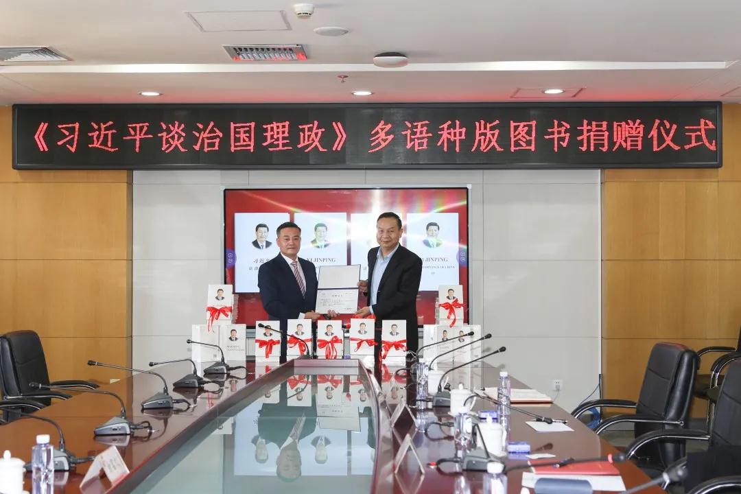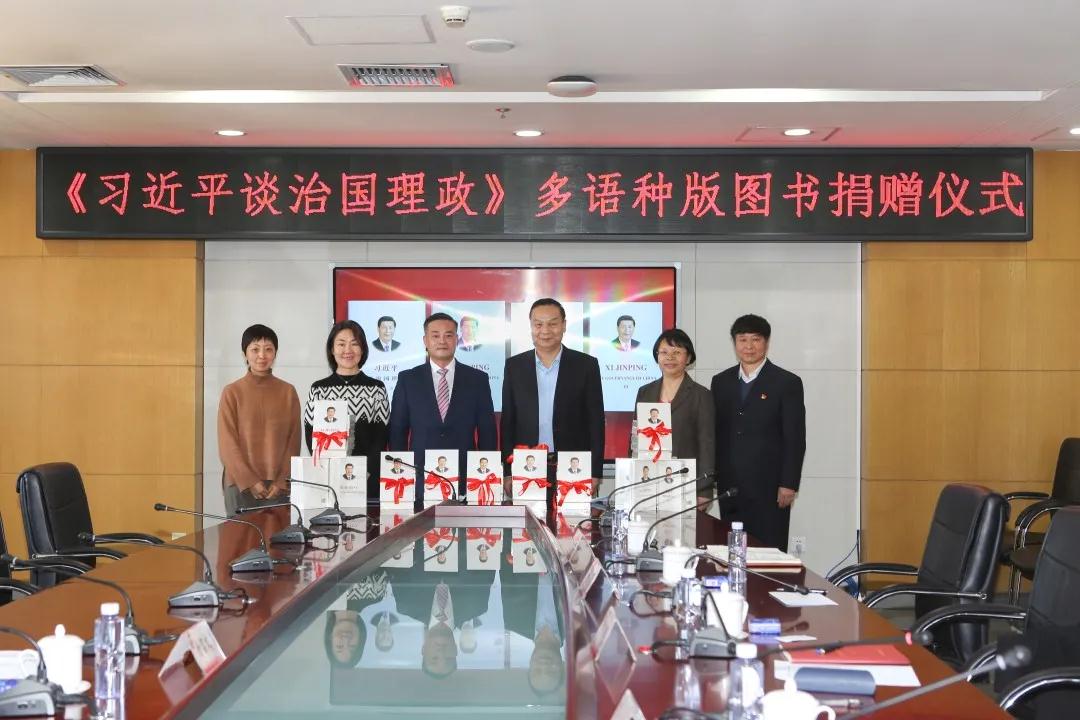 儀式上,李書記向北京崇學文化發展有限公司余先生捐贈該套圖書表達了感謝,并簡要介紹學院歷史和辦學育人、對外交流工作。此次捐贈的多語種圖書,豐富了圖書館外文館藏資源,是學校圖書館寶貴的文獻資源,有助于全校師生在國際交流中遵循習近平治國理政思想,有助于留學生了解習近平治國理政思想,有助于在民間外交中宣揚和講好中國故事。