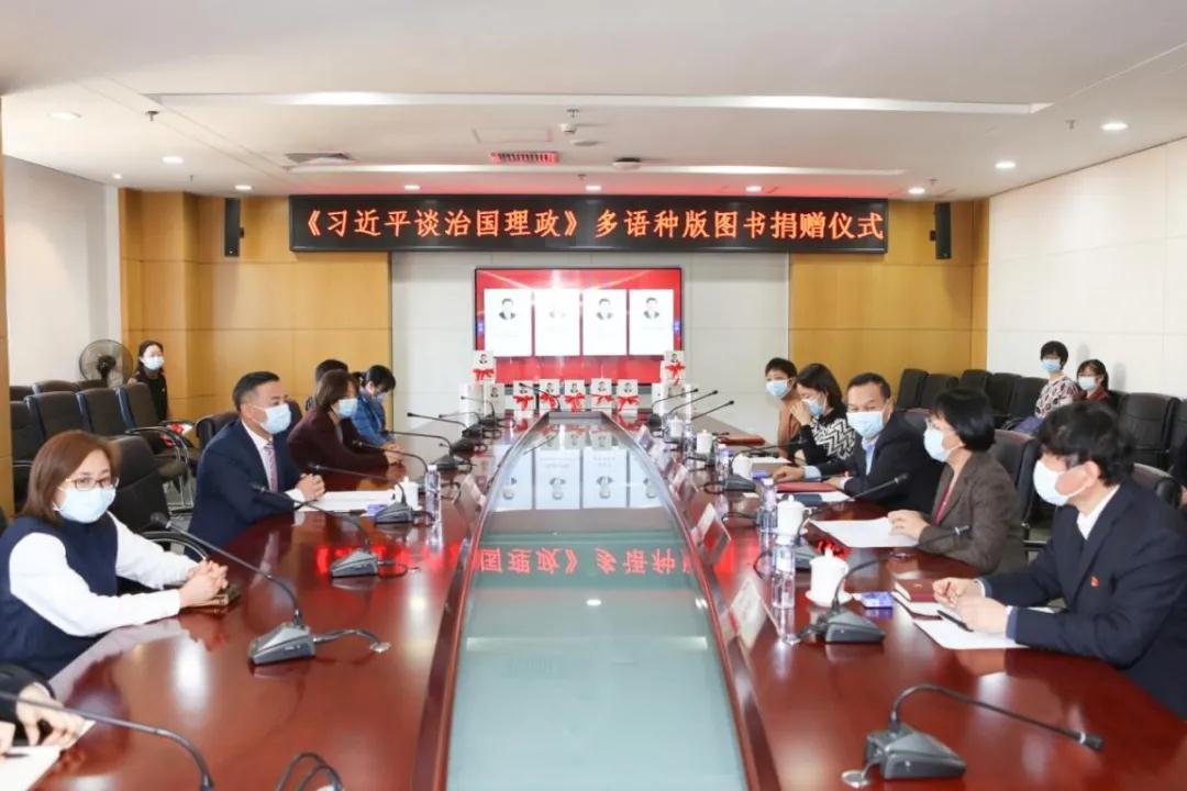 2020年12月23日上午,《習近平談治國理政》多語種版圖書捐贈儀式在我院圖書館舉行。學院黨委書記李明舜代表中華女子學院接受捐贈,并為捐贈方北京崇學文化發展有限公司負責人余富文先生頒發捐贈證書。捐贈儀式由學院副院長王練主持,校辦主任韓燕、圖書館館長馬良、副館長邵娟以及圖書館全體館員出席捐贈儀式。
