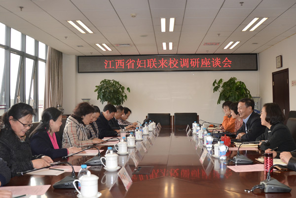3月16日,江西省婦聯黨組書記、主席王慶,黨組成員、副主席黃海燕,江西省鐵路投資集團置業公司副總經理朱斌等一行八人來我校調研。學校黨委書記李明舜、院長劉利群、副院長劉夢及高職學院負責人一起接待了來賓。