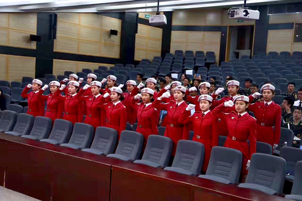 在下午的換屆儀式上,我校國旗班班長、教官分別發言,往事歷歷在目,輝煌與榮耀永存心間。全體國旗班同學在新隊長的帶領下慷慨宣誓,決心以青春譜寫國旗禮贊,用青春捍衛國旗尊嚴。