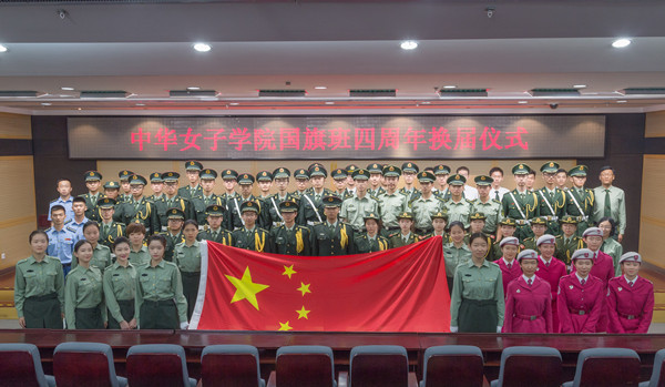中華女子學院國旗班自2013年3月成立以來,經過一屆又一屆隊員的努力,已經逐漸成為一個體制不斷健全、制度逐漸規范的半軍事化學生組織。四年來,每一屆隊員都秉承著愛護國旗、守護國旗的信念,刻苦訓練、積極進取,得到了校內外的一致認可,在參加各類隊列展示及規范升旗比賽中,多次榮獲全國和北京市高校一等獎、最佳團體獎和最佳升旗手等多項榮譽。今后,女院國旗班將繼續秉承“巾幗青春,崇旗愛國,綠裝紅顏,勇往直前”的精神,以巾幗之志,守衛民族之魂,努力為女院校園文化建設樹立起一面愛國主義的旗幟。