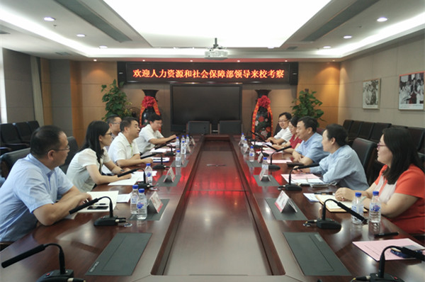 6月15日,人力資源和社會保障部農民工司家庭服務業處處長應三玉等一行五人到我校考察。學校黨委書記李明舜、高職學院院長孫建北接待了來賓。