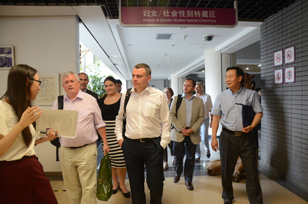 座談結(jié)束后,在李明舜的陪同下,英國對話代表團還參觀了學(xué)校女性圖書館與中國婦女人權(quán)研究中心。