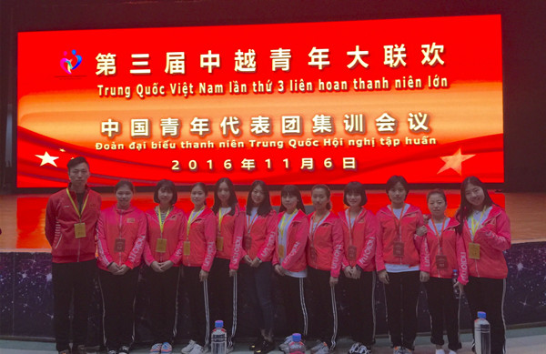 第三屆中越青年聯(lián)歡活動11月7日在越南諒山省友誼關(guān)啟動,應(yīng)共青團中央邀請,我校國韻團師生一行12人作為中國代表團成員參加了此次活動,在中越青年聯(lián)歡中的精彩表演得到了中越領(lǐng)導(dǎo)的一致肯定。