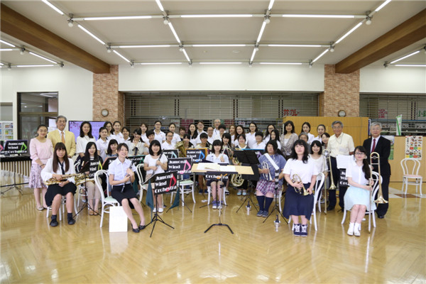 在日本十文字學園女子大學交流期間,該校管弦樂隊為到訪的師生演奏了《希望》、《星星》、《夢想》等樂曲,我校學生代表也即興演奏了一首樂曲,瞬間拉近了雙方師生的心理距離,隨后我校學生為樂團指揮老師和18位演奏者送上了極具中國文化元素的小禮物。