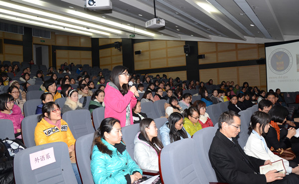 隨后學(xué)生們也踴躍發(fā)言,積極提問,就自己關(guān)注的女大學(xué)自主創(chuàng)業(yè)、女性社會性別優(yōu)勢和劣勢、美國勞工部的就業(yè)培訓(xùn)項目及國際合作項目、女大學(xué)生個人職業(yè)發(fā)展規(guī)劃等等,與兩位美國客人進(jìn)行了深入交流和討論。學(xué)生們現(xiàn)場的發(fā)言和表現(xiàn),展示了我校學(xué)生的優(yōu)秀素質(zhì),給來訪的客人們留下了深刻印象。