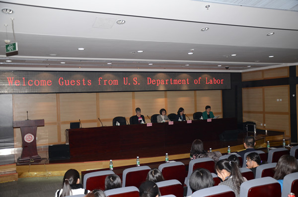 2014年12月9日下午,美國勞工部就業(yè)與職業(yè)培訓(xùn)事務(wù)局助理部長吳俞蓉(Portia Wu)女士和助理部長幫辦特雷莎·葛爾頓(Teresa W. Gerton)女士一行來訪我校,就“女性成長與個人職業(yè)發(fā)展”與我校學(xué)生進(jìn)行了分享交流。