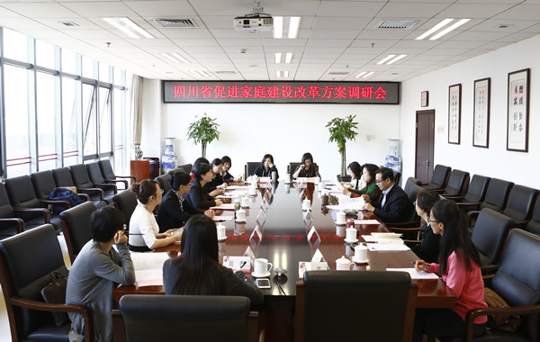 會上,吳旭介紹了《四川省促進家庭建設改革方案》出臺的背景和主要內容。與會人員高度評價四川省婦聯推動省級政府多個部門聯合促進家庭建設的強烈使命感、責任感和超前意識,并就方案的名稱、方案核心內容與社會主義核心價值觀的關系、如何利用新媒體開展工作、方案的落實部門及權限分工等問題展開了熱烈探討,圍繞方案的指導思想、基本原則、責任主體、經費保障等方面提出了建議和意見。吳旭表示不虛此行,對各位專家、學者提出建設性意見建議表示感謝,希望與我校進一步加強婦女干部培訓、婦女工作理論研究等方面的實質性合作。