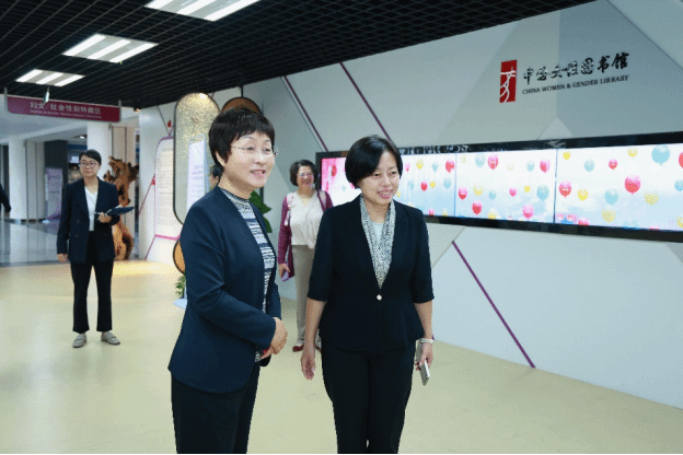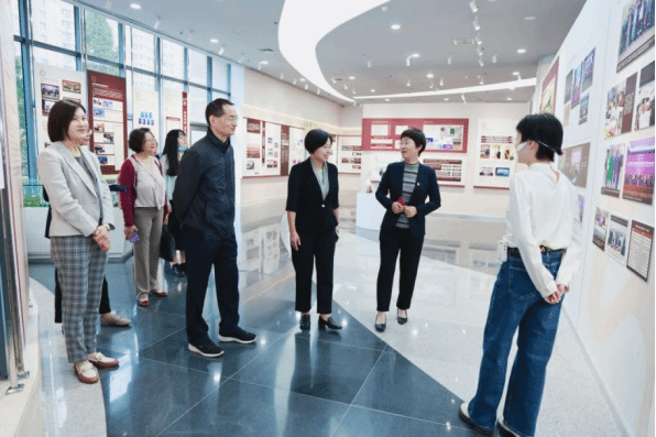 座談會(huì)前,鄭薇一行參觀了我校新落成的校史館和中國女性圖書館。
