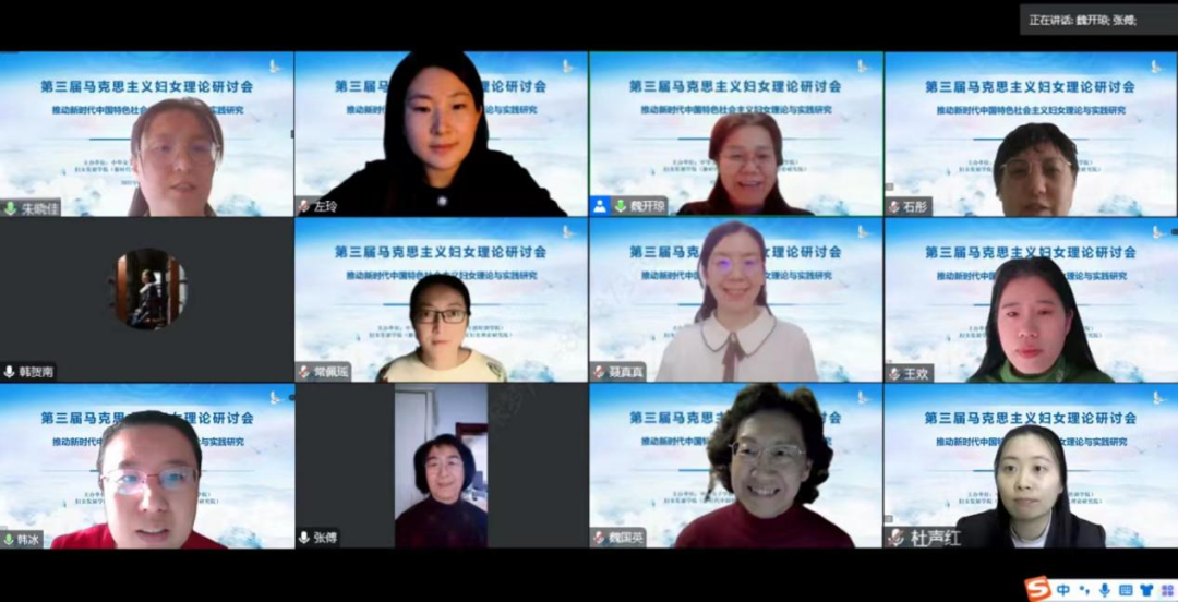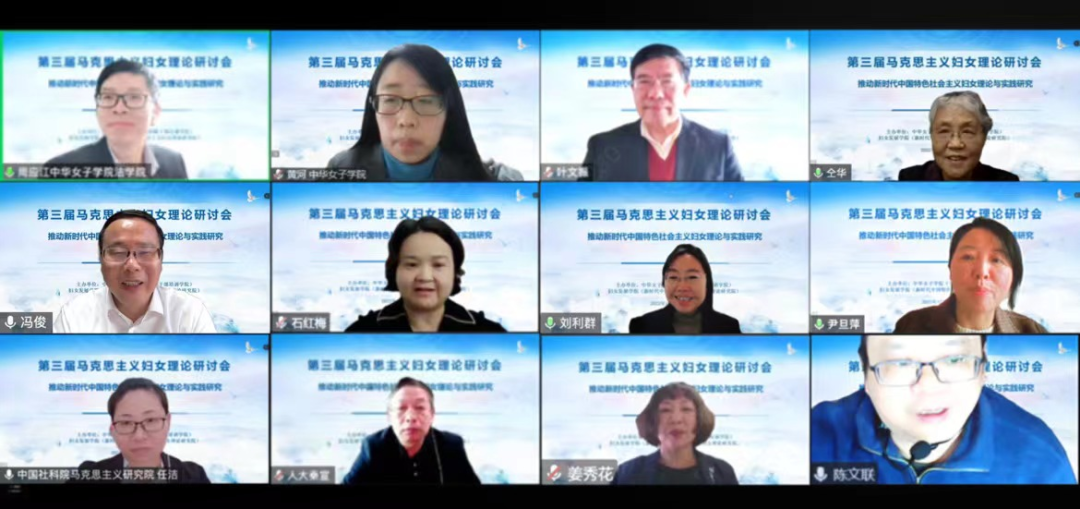 中國共產黨自成立以來,始終堅持以馬克思主義婦女理論為指導,結合中國實際,開辟中國特色社會主義婦女發展道路,豐富和發展馬克思主義婦女理論。黨的二十大報告中指出,要開辟馬克思主義中國化時代化新境界,譜寫馬克思主義中國化時代化新篇章。為深入學習貫徹黨的二十大精神,深刻領悟在推進中國式現代化進程中統籌推進婦女事業發展的戰略意義,更好地推動新時代中國特色社會主義婦女理論研究,中華女子學院(全國婦聯干部培訓學院)新時代中國特色社會主義婦女理論研究院2022年12月10日通過騰訊會議平臺順利舉辦了的“第三屆馬克思主義婦女理論研討會”線上會。來自中國社會科學院、全國婦聯婦女研究所、清華大學、北京大學、中國人民大學、廈門大學、中南大學、中南民族大學、貴州師范大學、貴州財經大學等90余人相聚云端,18位專家學者圍繞“推動新時代中國特色社會主義婦女理論與實踐研究”主題進行探討。