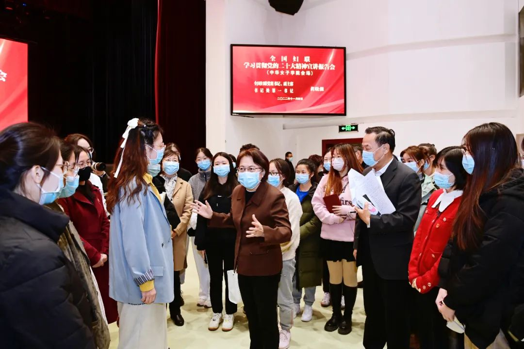 2022年11月4日,全國婦聯(lián)學(xué)習(xí)貫徹黨的二十大精神宣講報(bào)告會(huì)在學(xué)校舉行。全國婦聯(lián)黨組書記、副主席、書記處第一書記黃曉薇作宣講報(bào)告,并與師生們交流互動(dòng)。
