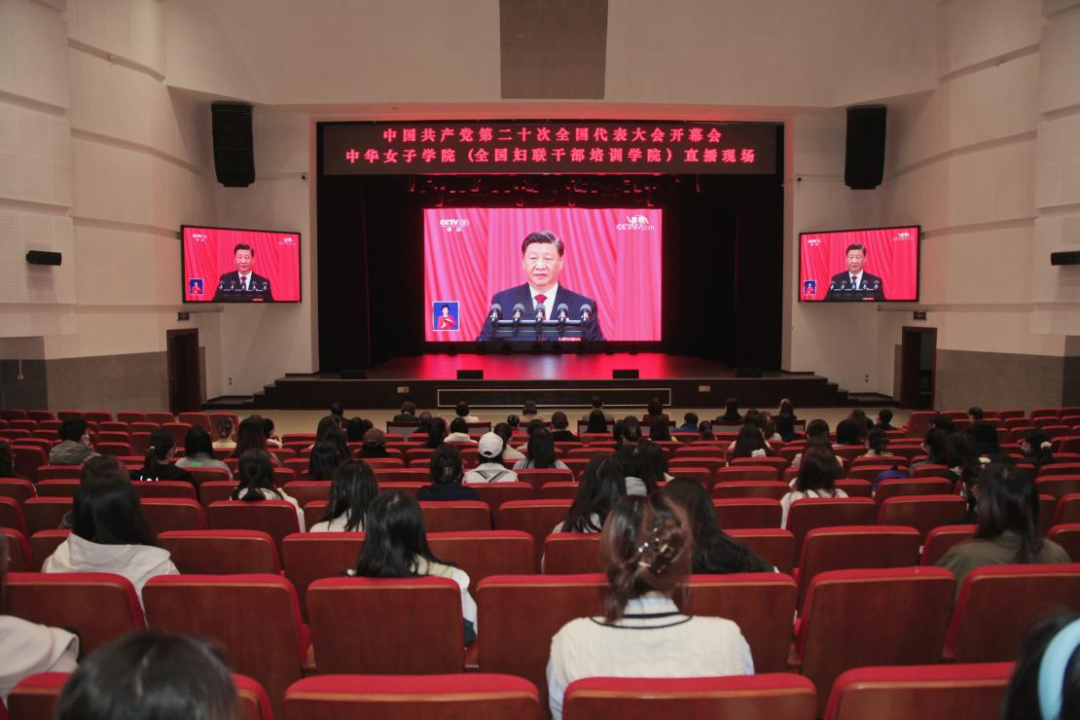 2022年10月16日,學(xué)校師生在禮堂和北校區(qū)同步觀看直播黨的二十大開幕會(huì)盛況。