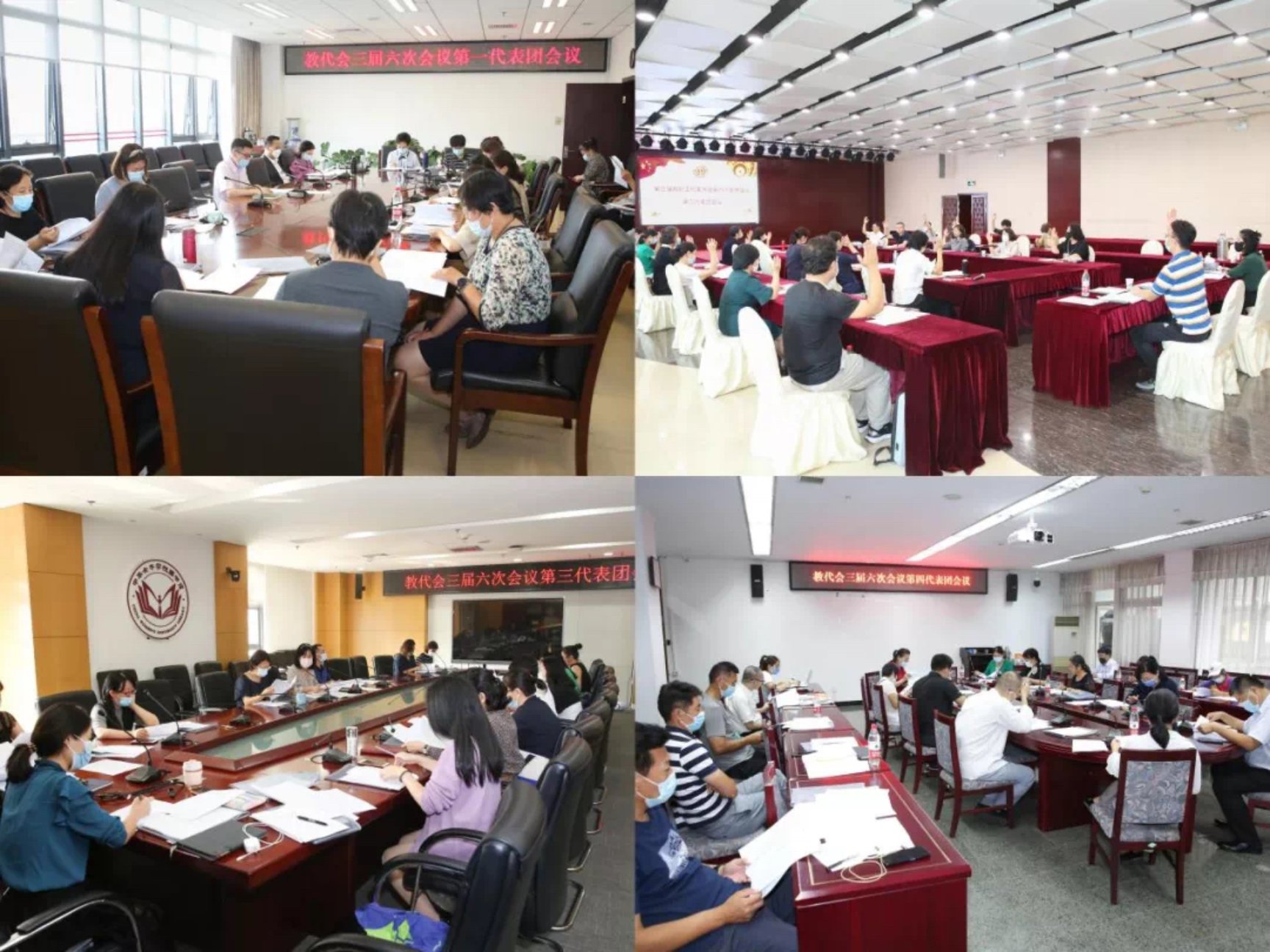 9月13日—14日,學校召開第三屆教職工暨工會會員代表大會第六次全體會議及分團討論會。根據疫情防控常態化要求,全體會議通過線上方式召開,會議由工會主席任翠茹主持;各代表團會議線下召開,分別由各代表團團長主持。教職工和工會會員代表共82人參加線上線下會議,全校非代表教職工200多人列席線上會議。
