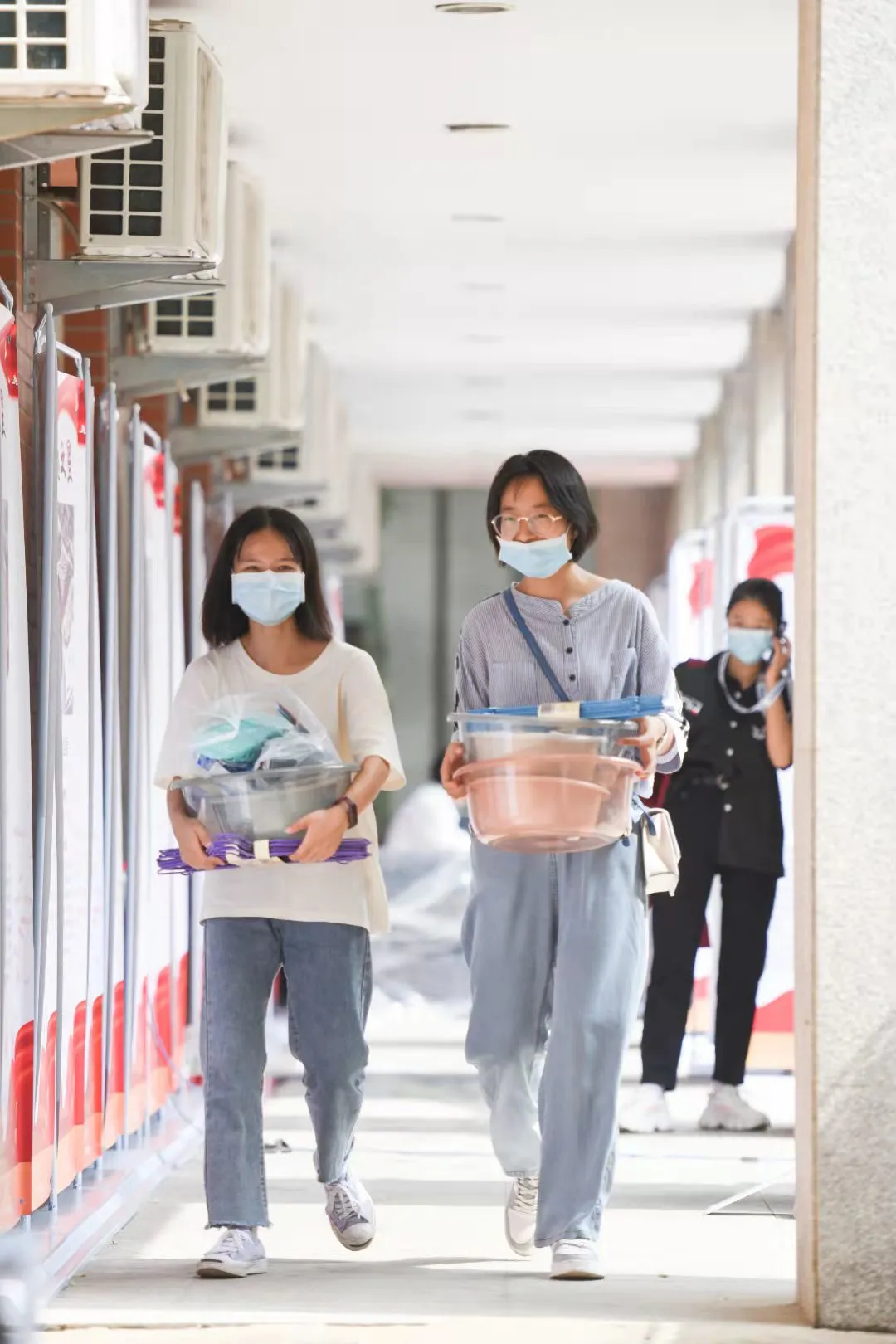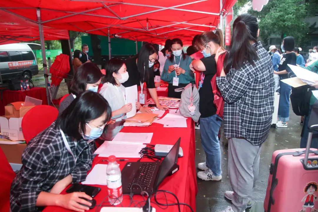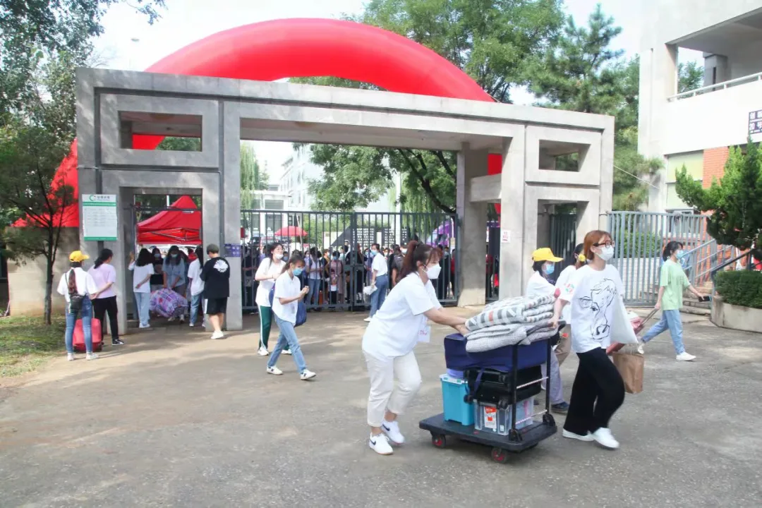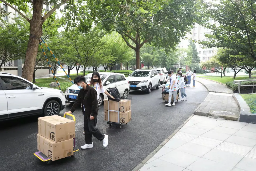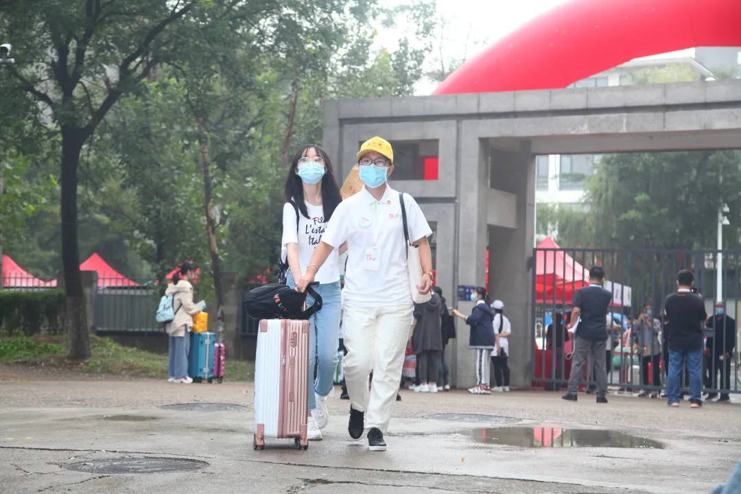 報到當天,學校安排在北校區臨近地鐵站接駁報到本科新生,行李經初次消殺后,新生憑借錄取通知書、健康碼登車。新生入校前核驗入校碼、健康寶綠碼、通信大數據行程卡綠碼、核酸檢測報告,并進行體溫測量,行李再次消殺后方可入校。