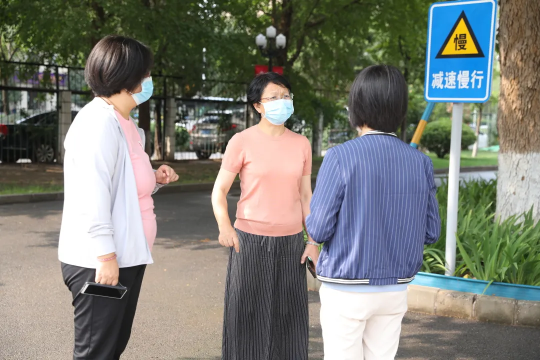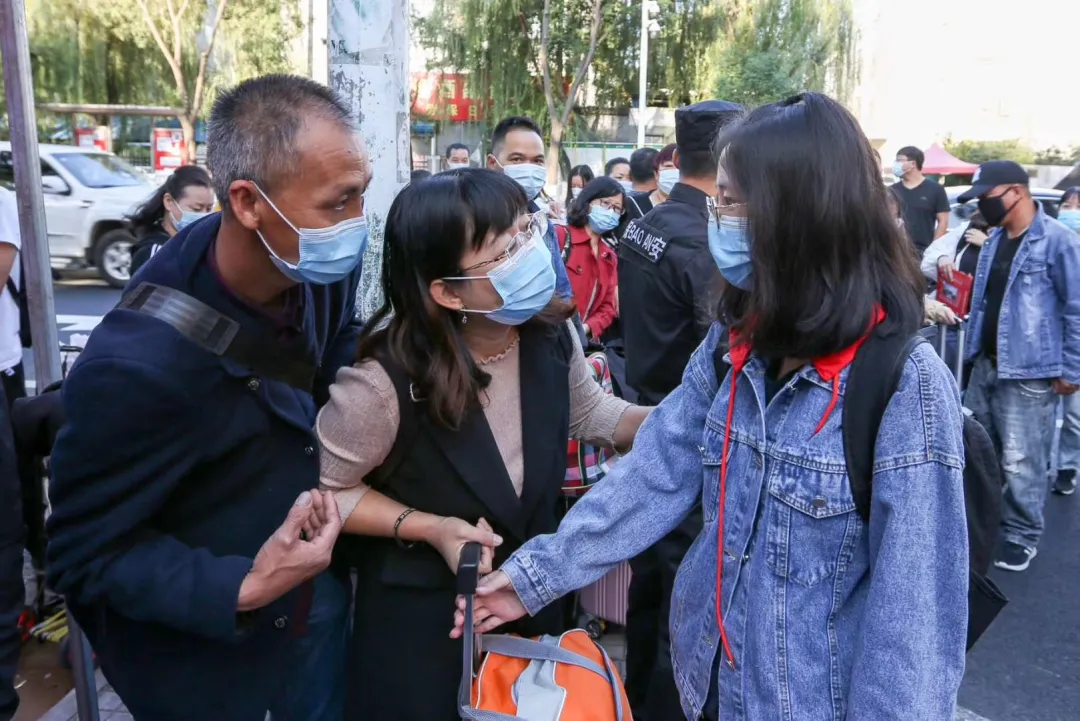 看到家長們聚集在大門口向報到處熱切張望,李明舜走到他們面前親切交談:“疫情原因,各位家長只能送到這里。孩子交給我們,請你們放心!”