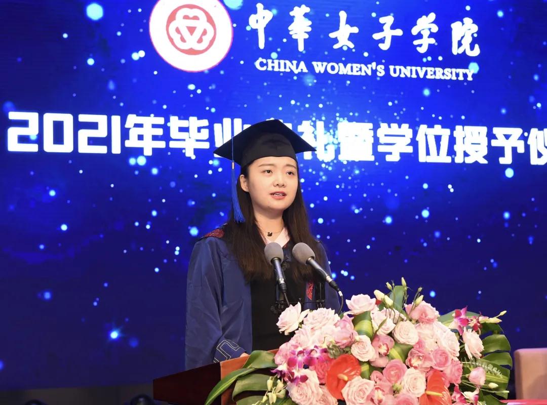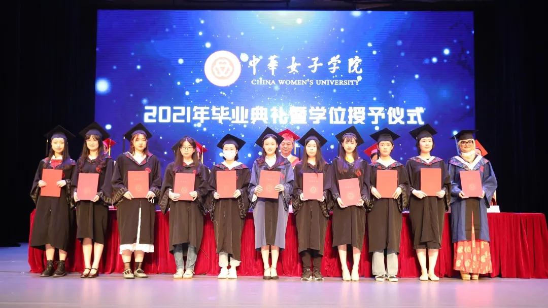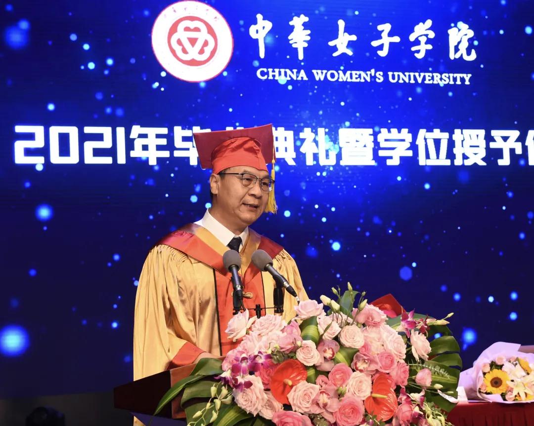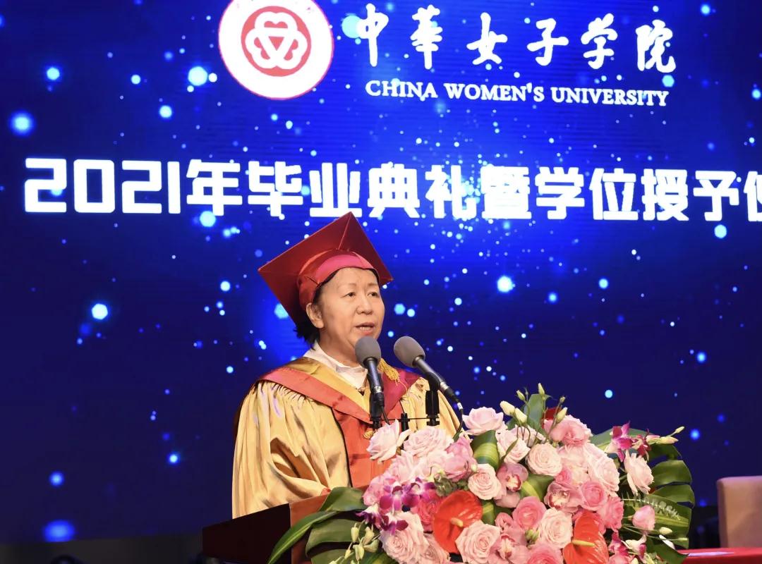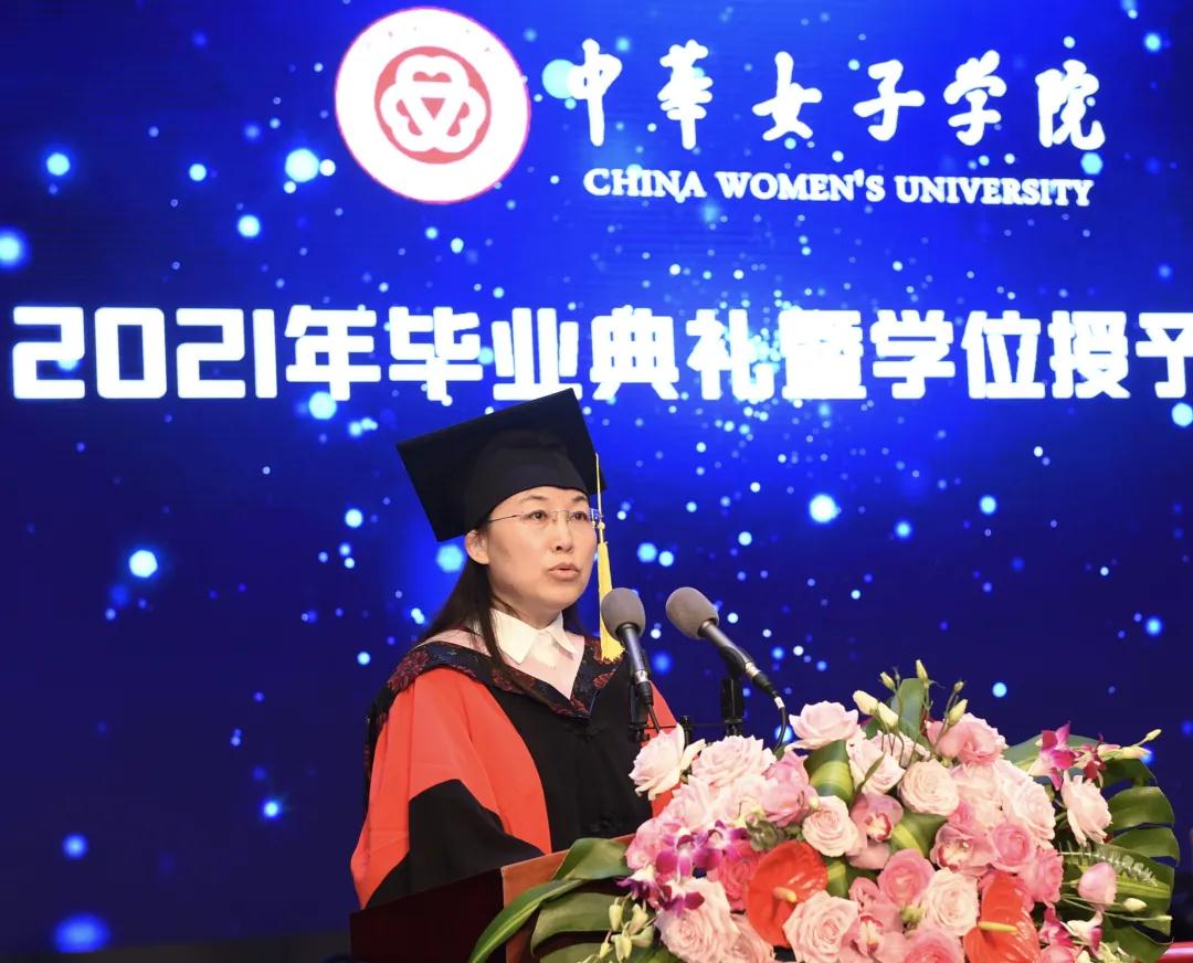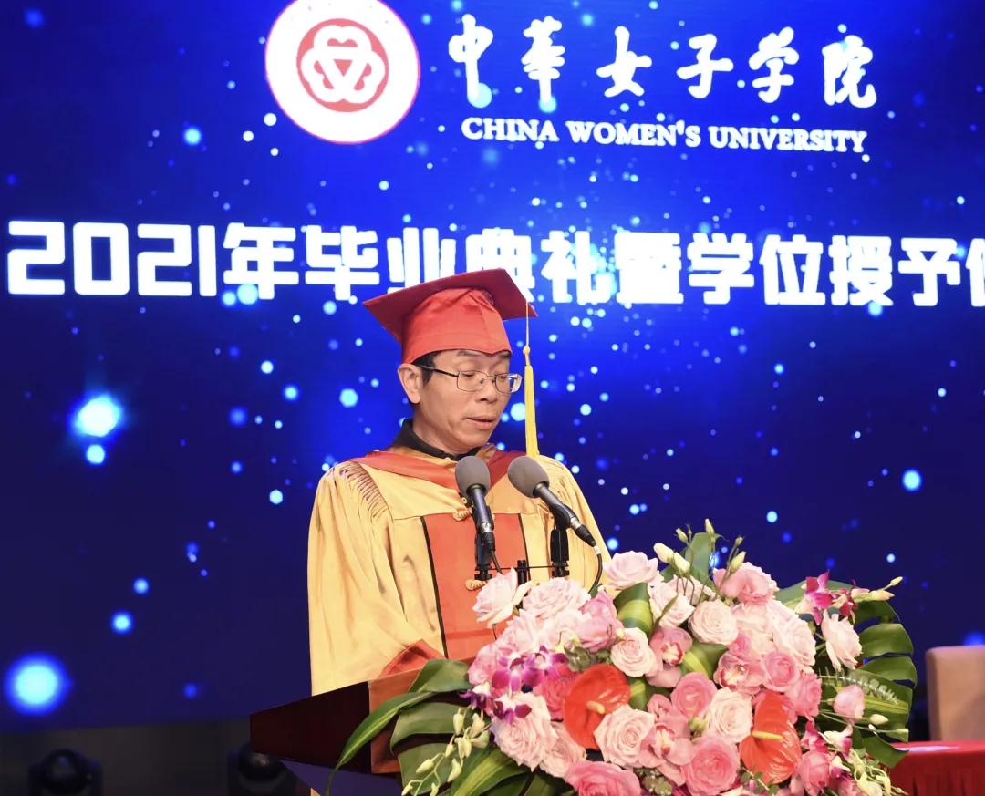 典禮上,副院長王練、黨委副書記兼紀委書記任翠茹、副院長周應江分別宣讀了《中華女子學院關于授予2021屆畢業學生學位的決定》、《中華女子學院關于表彰2021屆優秀畢業生的決定》、《中華女子學院2021屆畢業生人數》。校領導為87名研究生,包括25名援外學歷學位教育項目碩士研究生,以及1195名本科生代表、158名優秀畢業生代表頒發了畢業證書和榮譽證書。