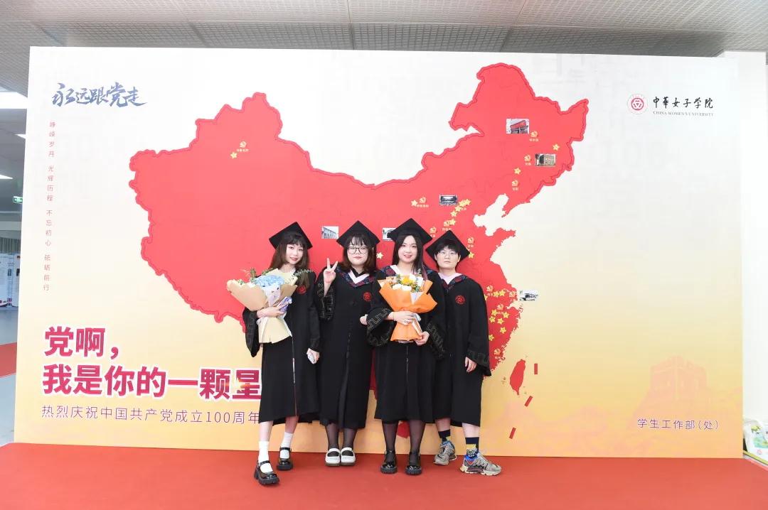 畢業生們身穿學位服在女院的四季輪回中走過,秋收、冬藏、春生、夏長,每一處光景都是難忘的記憶;帶著對未來的美好期待,同學們在“黨啊,我的你的一顆星”主題展示板上將自己的就業和求學去向印刻在了我們黨百年征程的歷史定位中;“立大志、明大德、成大才、擔大任”、“我們畢業啦”、“前途似海來日方長”等畢業留念板前畢業生們留存美麗的身影;今年學校為畢業生定制了畢業文化衫、“I愛CWU”畢業生專屬口罩,“我愛女院”的造型成為了同學們喜愛的拍照打卡地。在“小額捐贈獻愛母校”展板前,同學們自發進行捐贈,作為校友基金,支持母校發展。