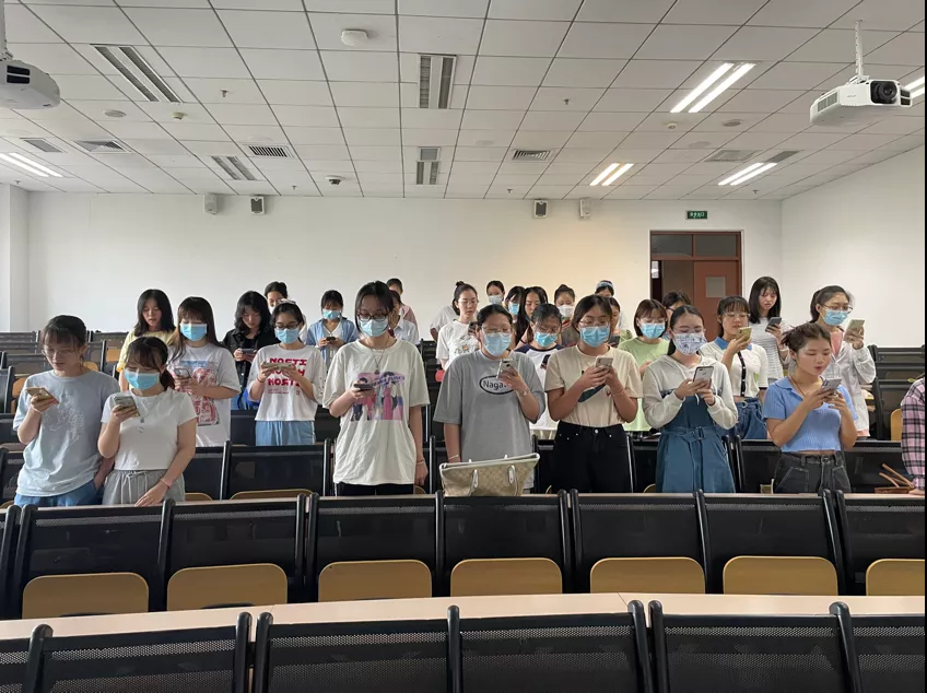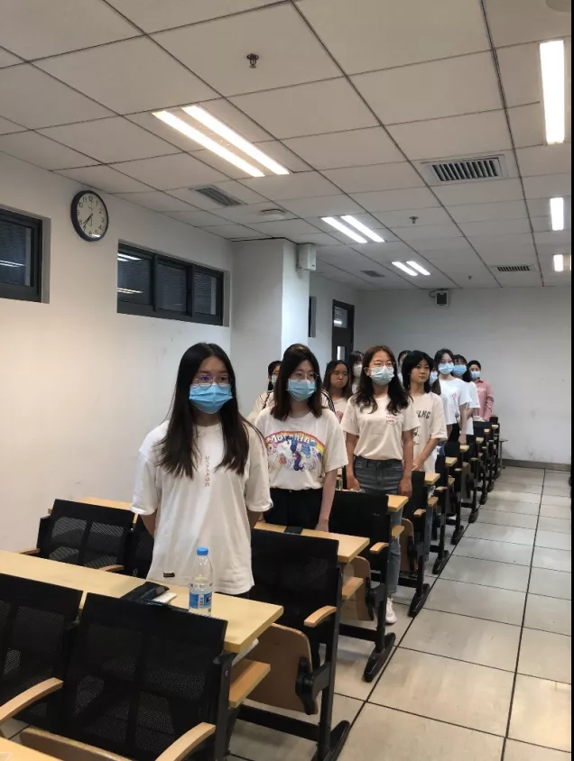 已經返校的2018、2019級各團支部以“開學第一課”的形式,在各班第一堂課的教室,舉行了線上升旗儀式。