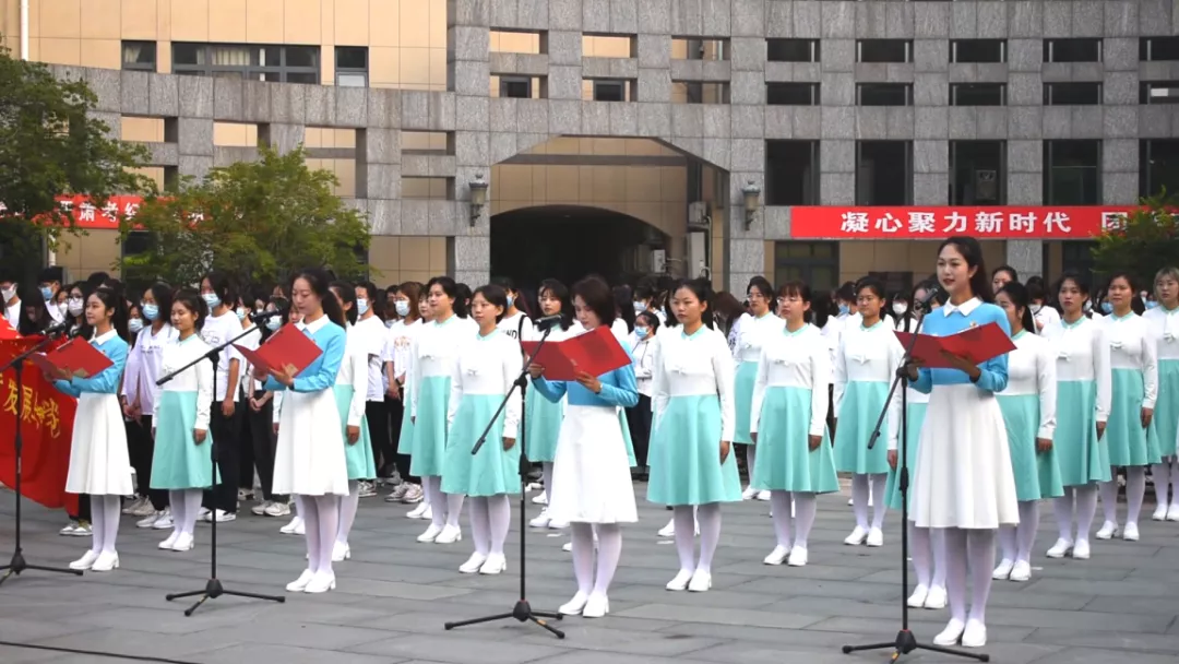 新學期、新氣象、新目標、新起點,伴著激動人心的國歌、青春嘹亮的合唱、斗志昂揚的集體獻詞,感受到中國共產黨的百年進程的不易和走進新時代的喜悅感。我們新青年生在紅旗下,長在新時代,堅決擁護黨的領導,堅定百年精神,堅守百年初心,為中國人民謀幸福,為中華民族謀復興!請黨放心,強國有我們!