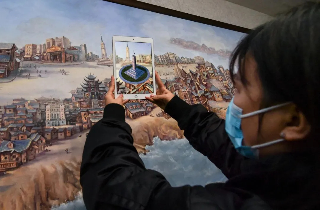 近年來,重慶紅巖革命紀念館積極推動革命文物活化利用,讓革命文物資源融入到當代文化生產和生活方式中,讓紅巖革命文物“活”起來。圖為工作人員在重慶紅巖革命紀念館“紅巖記憶”數(shù)字體驗廳內使用移動設備演示AR互動展示技術(2020年12月9日攝)。新華社記者 李賀/攝