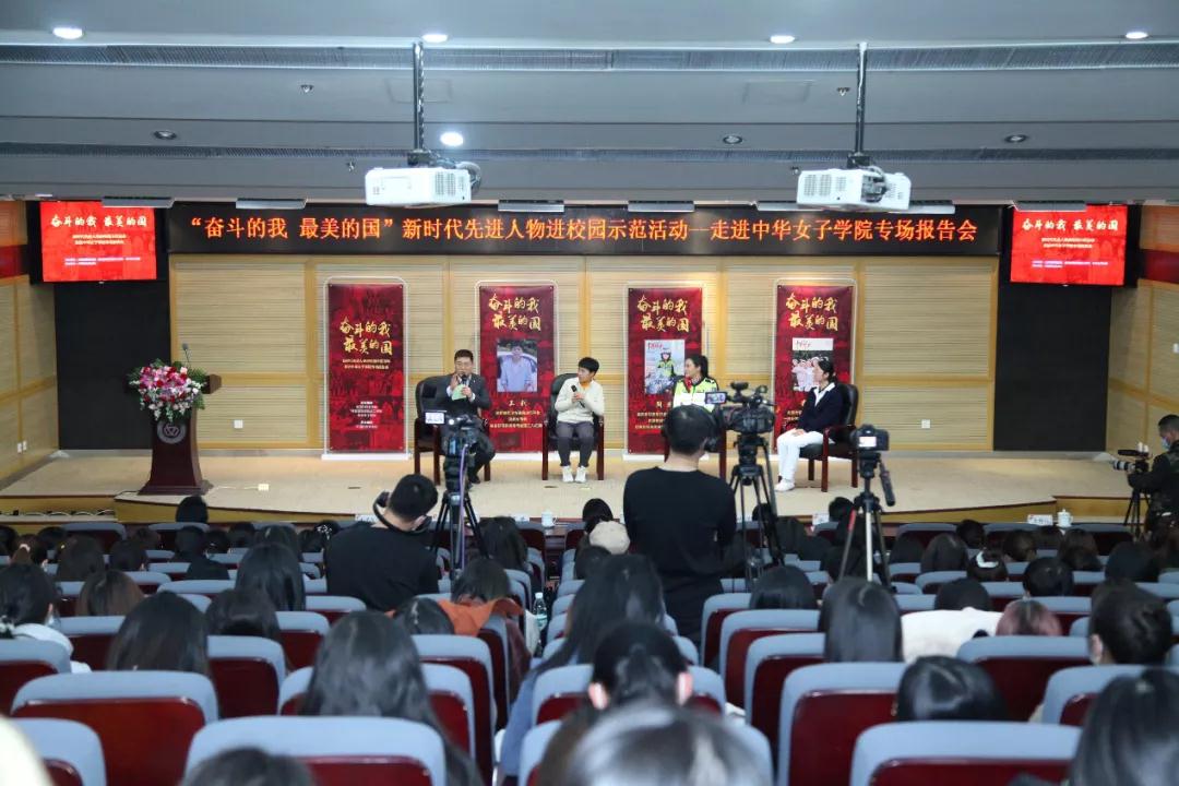 11月26日,全國婦聯宣傳部、教育部思政司、中華女子學院聯合舉辦的“奮斗的我 最美的國”新時代先進人物進校園示范活動專場報告會在中華女子學院教圖樓一層報告廳舉行。報告會邀請到湖北省武漢市滴滴出行平臺網約車司機,榮獲抗擊新冠肺炎疫情全國三八紅旗手的王利,漢警快騎女子隊隊長,榮獲公安抗疫巾幗先鋒、抗擊新冠肺炎疫情全國三八紅旗集體的周艷,北京大學第三醫院眼科護士,一線女醫務人員集體榮獲抗擊新冠肺炎疫情全國三八紅旗集體的李思齊走進中華女子學院分享先進事跡,中華女子學院院長劉利群,全國婦聯宣傳部副部長綦淑娟,全國婦聯宣傳部教育文化處二級調研員張惠,中國婦女雜志社副社長吳寶麗,中華女子學院黨委副書記趙浩出席報告會,學校350余名師生代表參加了此項活動。報告會由CCTV發現之旅頻道主持人龔潔主持。